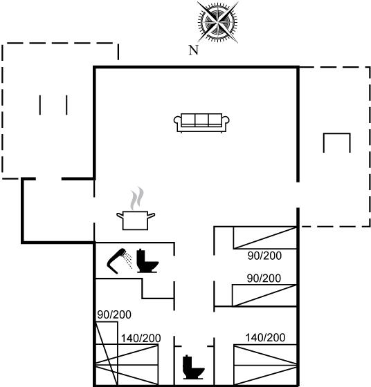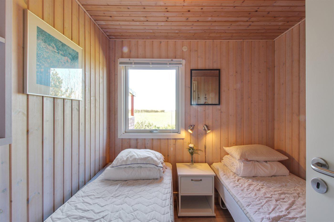Der er i alt 3 soveværelser. Sovepladserne fordeler sig på: 4 sovepladser i dobbeltsenge. 2 sovepladser i enkeltsenge. Derudover er der 1 stk. barneseng.