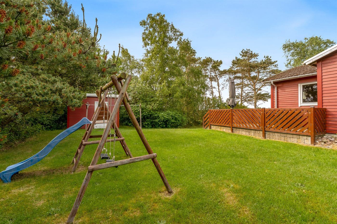 Ferieboligen er beliggende på en 1114 m² stor naturgrund. Der er 400 m til havet. Nærmeste forretning er beliggende i en afstand af 2000 m. Der er en golfbane i en afstand af 20000 m. Til ferieboligen hører 14 m² terrasseareal. Desuden er der 14 m² overdækket terrasse. Der er redskabsrum. Gynge. Sandkasse. Parkering ved ferieboligen.