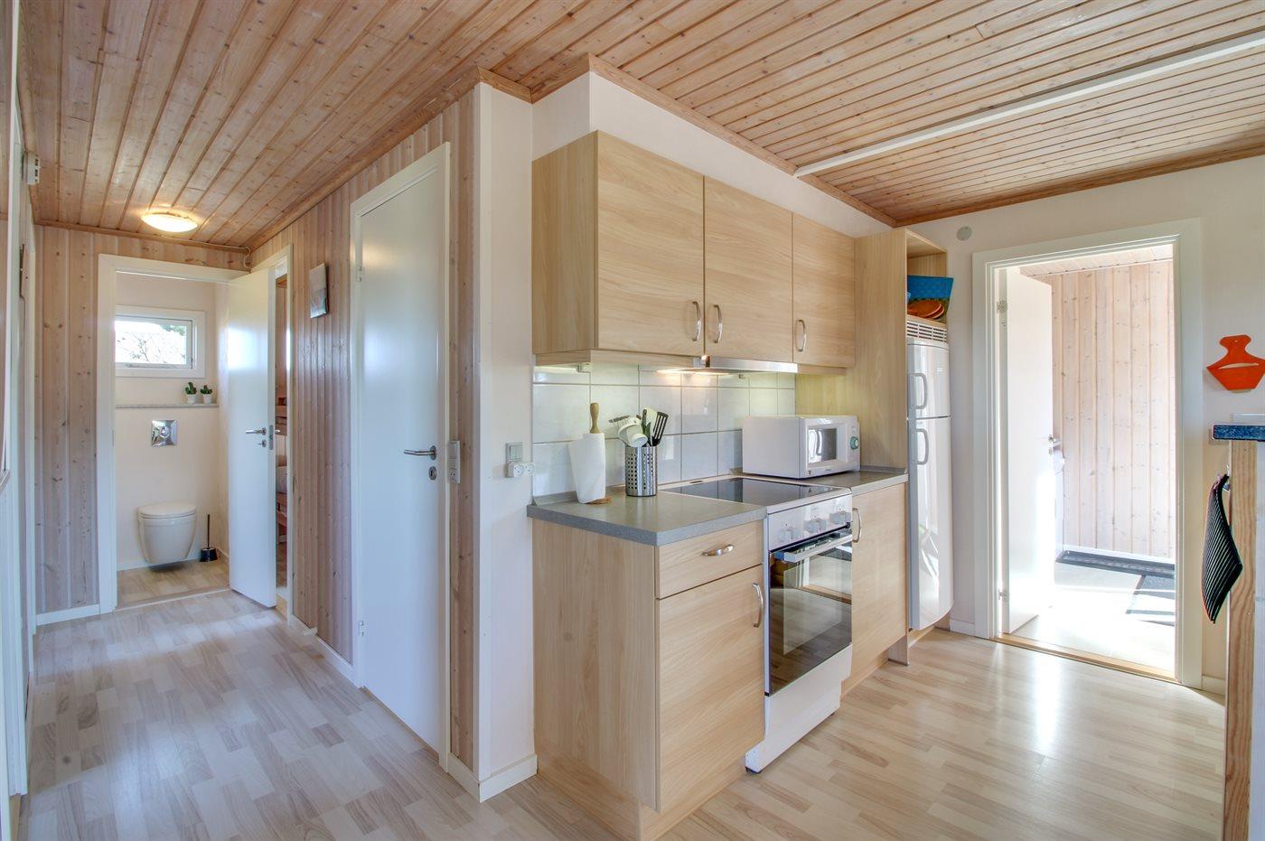 Køkkenet er udstyret med 1 køleskab. Der er 4 keramiske kogeplader, varmluftovn, mikrobølgeovn samt opvaskemaskine.