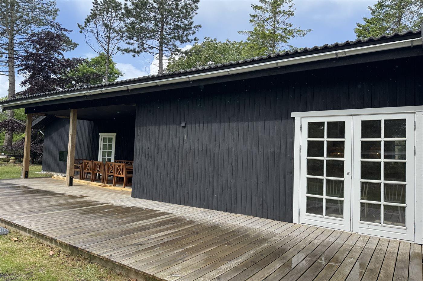 Sommerhuset byder på både indendørs spa og udendørs vildmarkskar, så velvære er i fokus året rundt. De overdækkede og åbne terrasser giver mulighed for at nyde udelivet i al slags vejr, og grillen indbyder til hyggelige grillaftener.