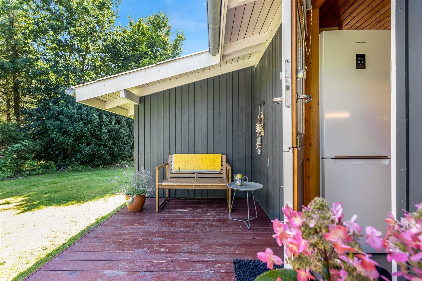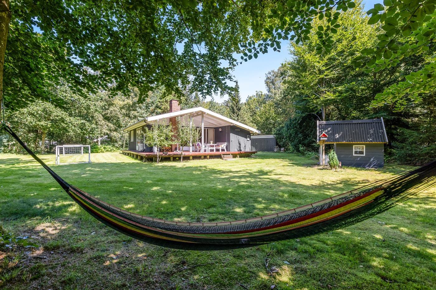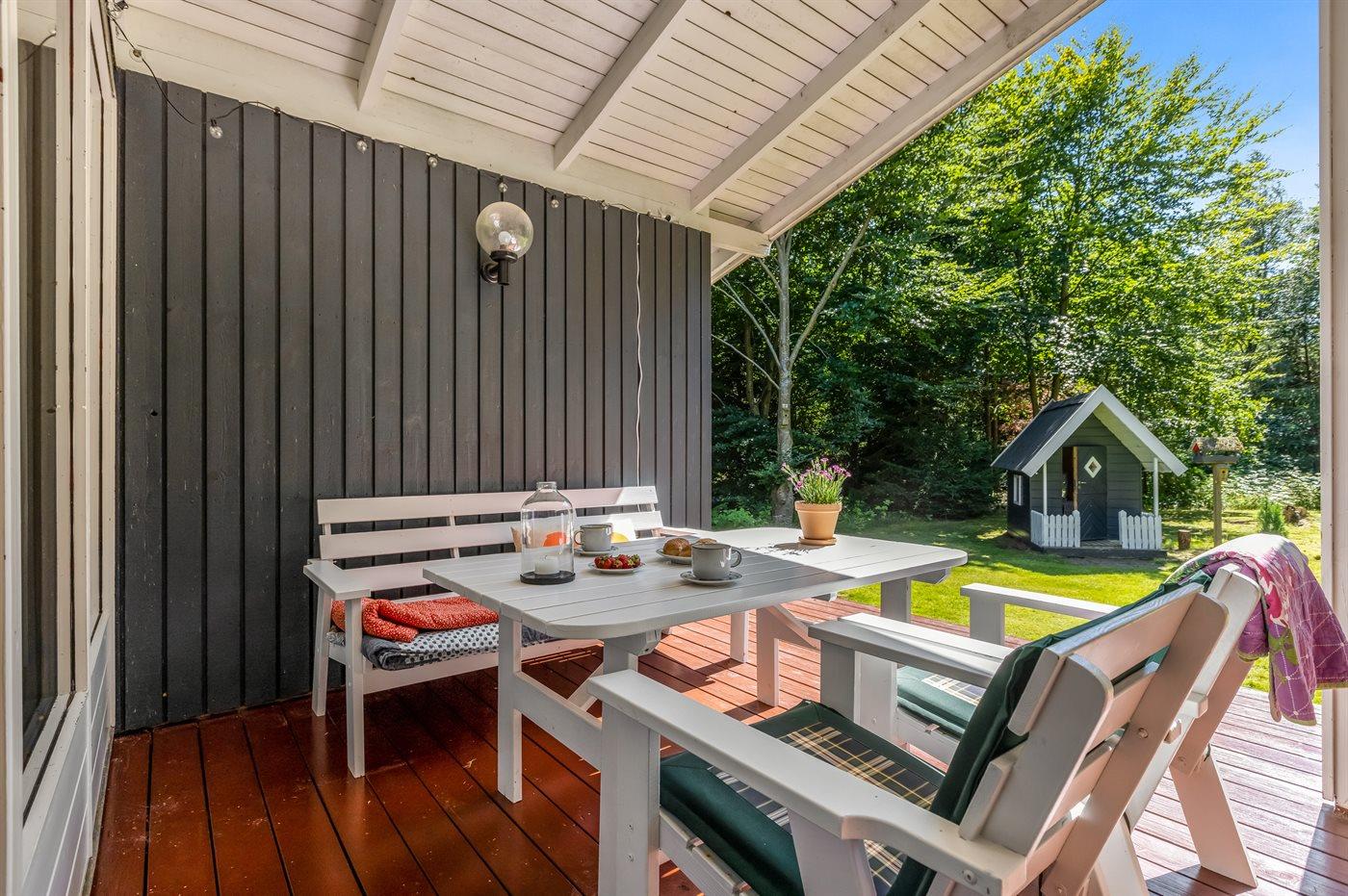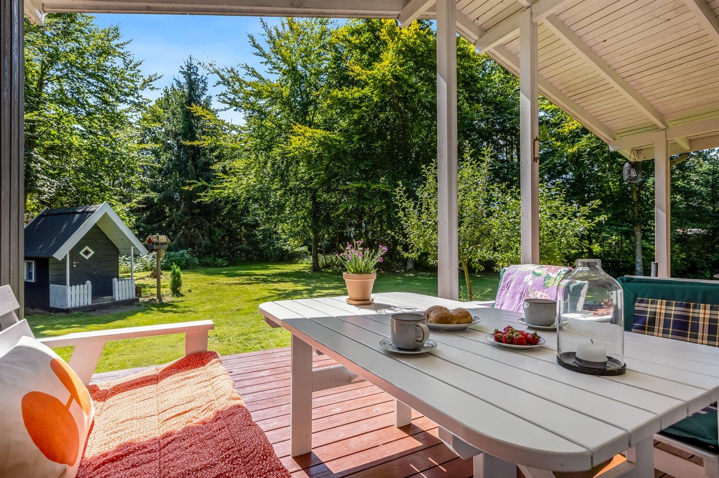 Sommerhuset har et herligt terrasseareal, hvorfra det er muligt at nyde solen og samtidigt have et godt overblik over haven, imens børnene hygger sig. Her er ligeledes en skøn overdækket terrasse, som er med til at forlænge de dejlige sommeraftener.