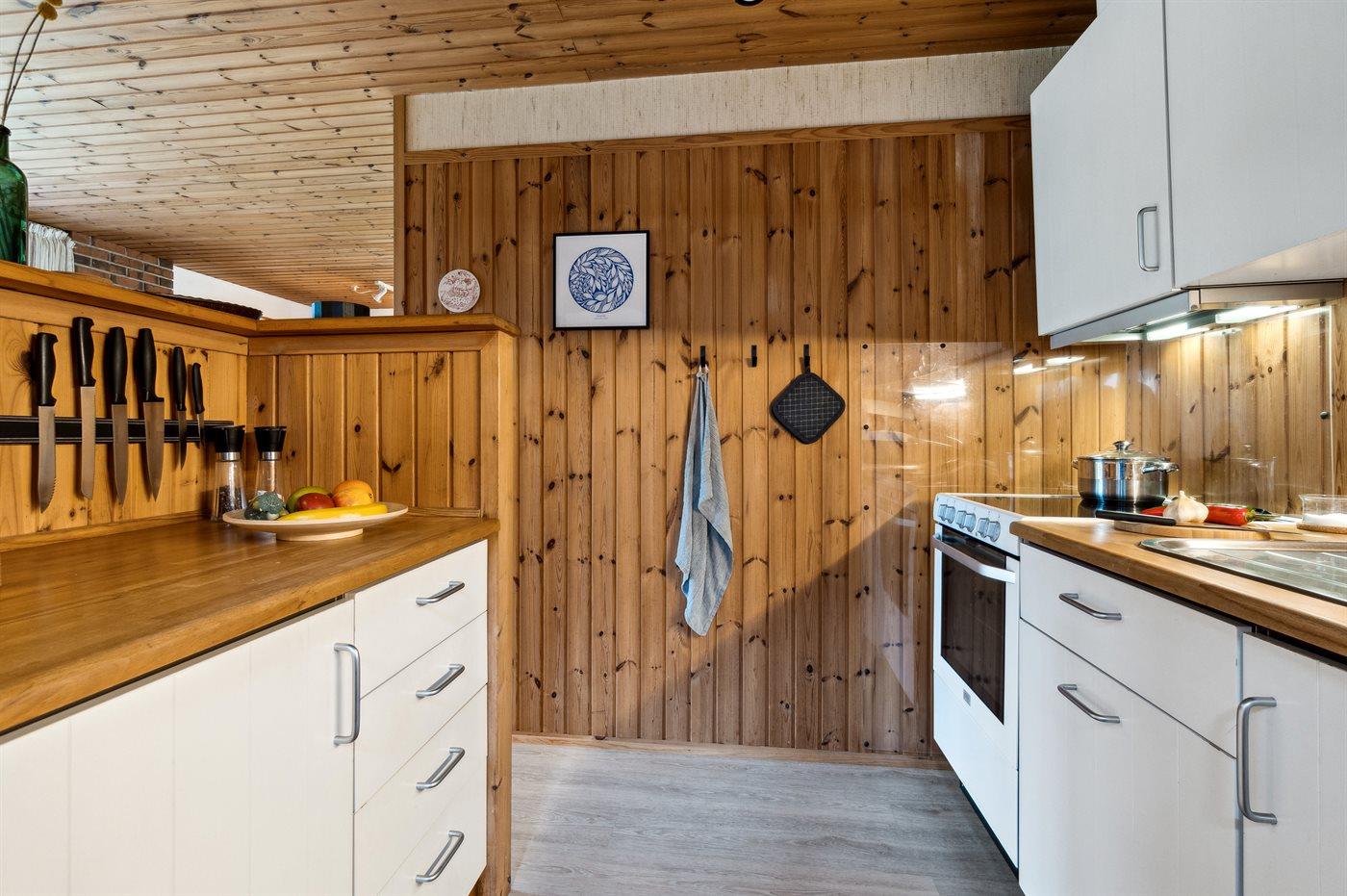 Køkkenet er udstyret med 1 køleskab. Der er 4 keramiske kogeplader, varmluftovn.
