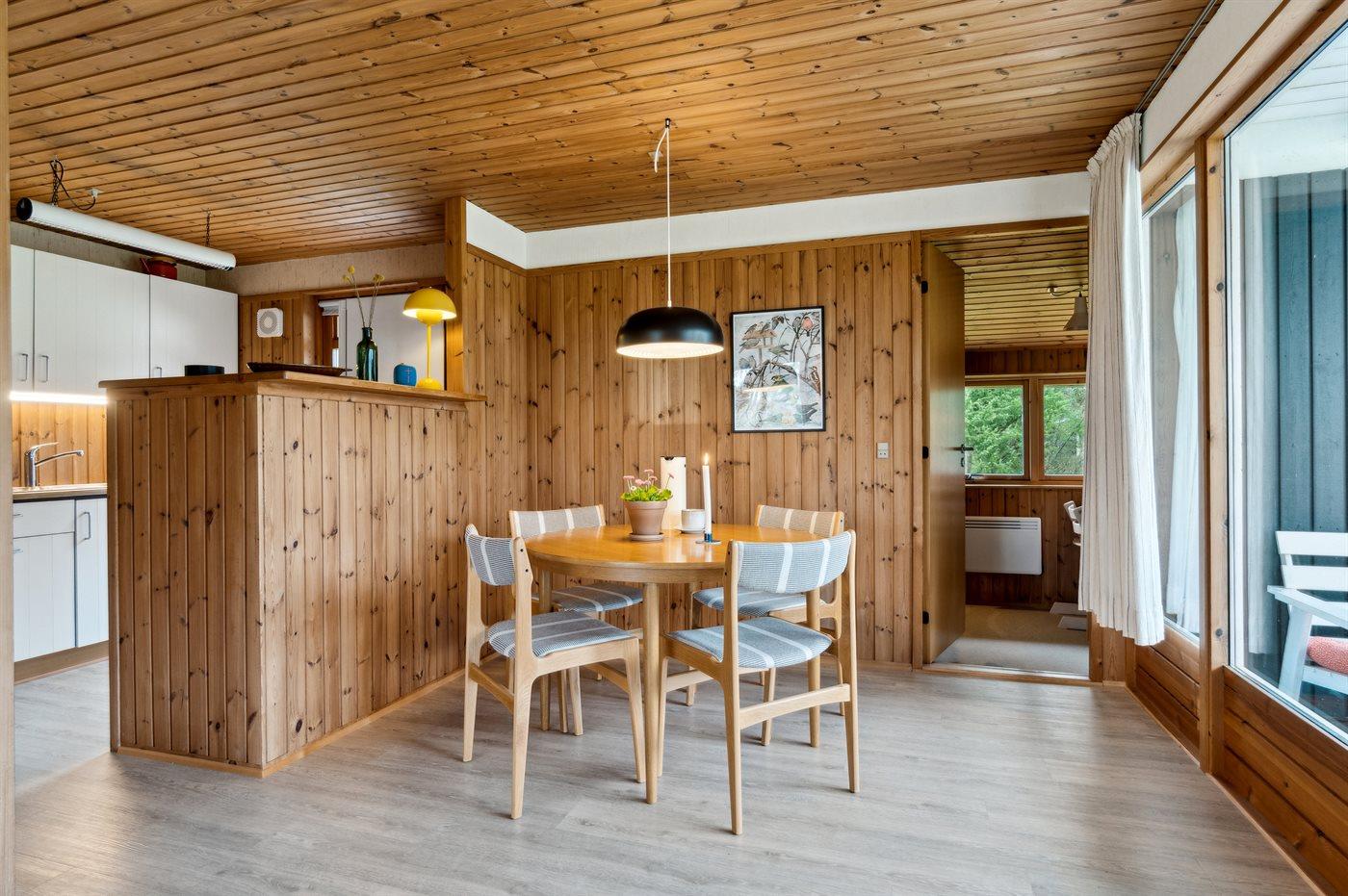 Indvendig fremstår sommerhuset i fin stand og tilbyder en god og hyggelig atmosfære, og huset er renoveret med stor respekt for dets oprindelige detaljer. Huset er godt indrettet, og her er fin plads til f.eks. en børnefamilie, desuden er det tilladt at medbringe en hund - mulighederne er mange i dette skønne sommerhus.