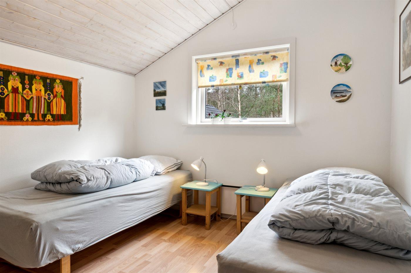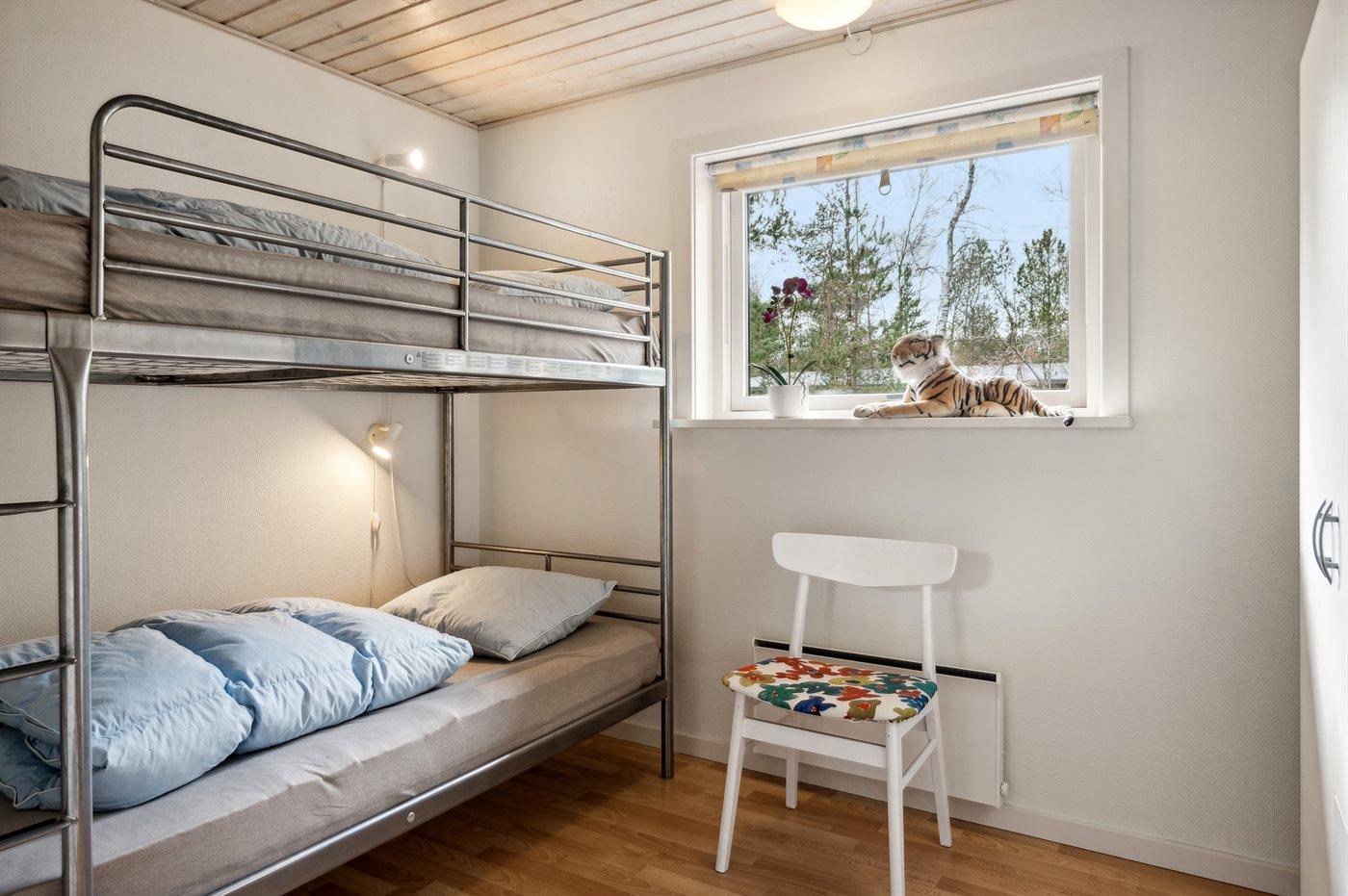 Der er i alt 3 soveværelser. Sovepladserne fordeler sig på: 4 sovepladser i enkeltsenge. 2 sovepladser i køjeseng. Derudover er der 1 stk. barneseng.