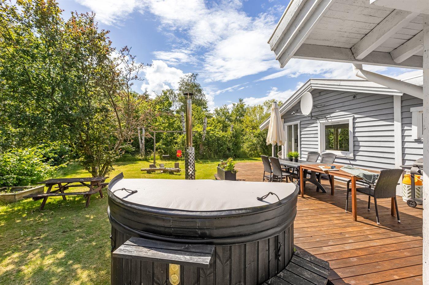 Skønt sommerhus i Helberskov med pool, sauna, spa og stor have nær Kattegat.