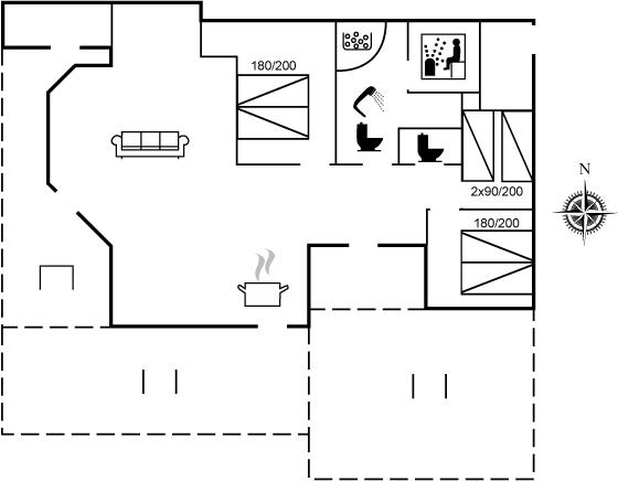 Der er i alt 3 soveværelser. Sovepladserne fordeler sig på: 6 sovepladser i dobbeltsenge. Derudover er der 1 stk. barneseng.