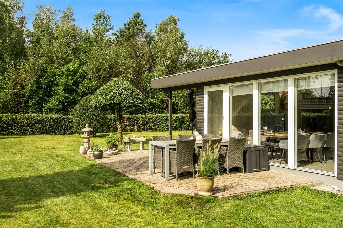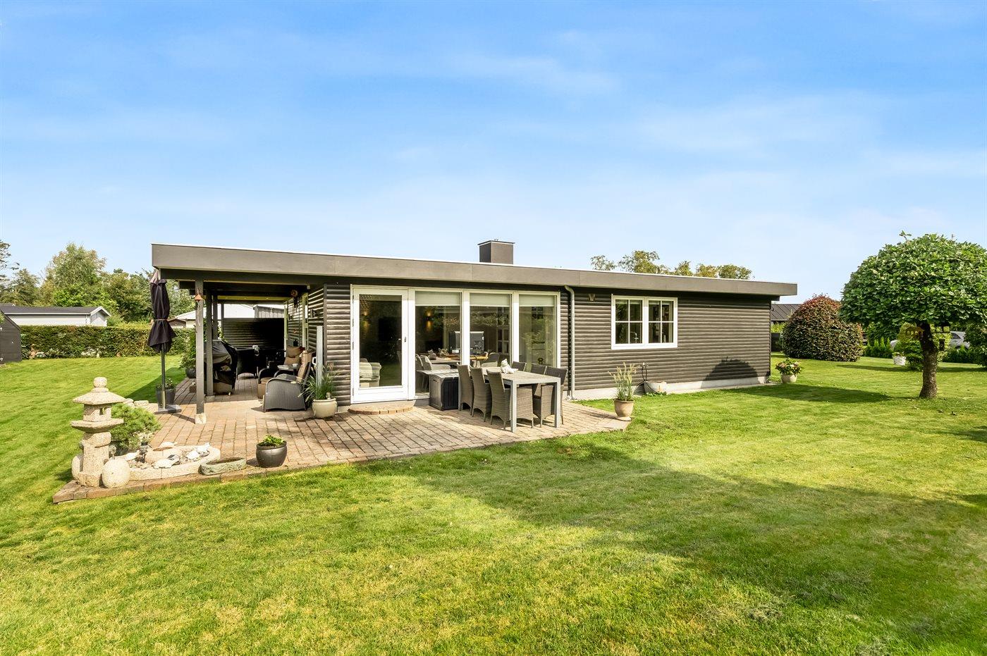 I kan tilbringe afslappede dage på terrassen, mens børnene leger i den flotte, velholdte have, og runde dagen af rundt om bålpladsen på stemningsfuld vis.