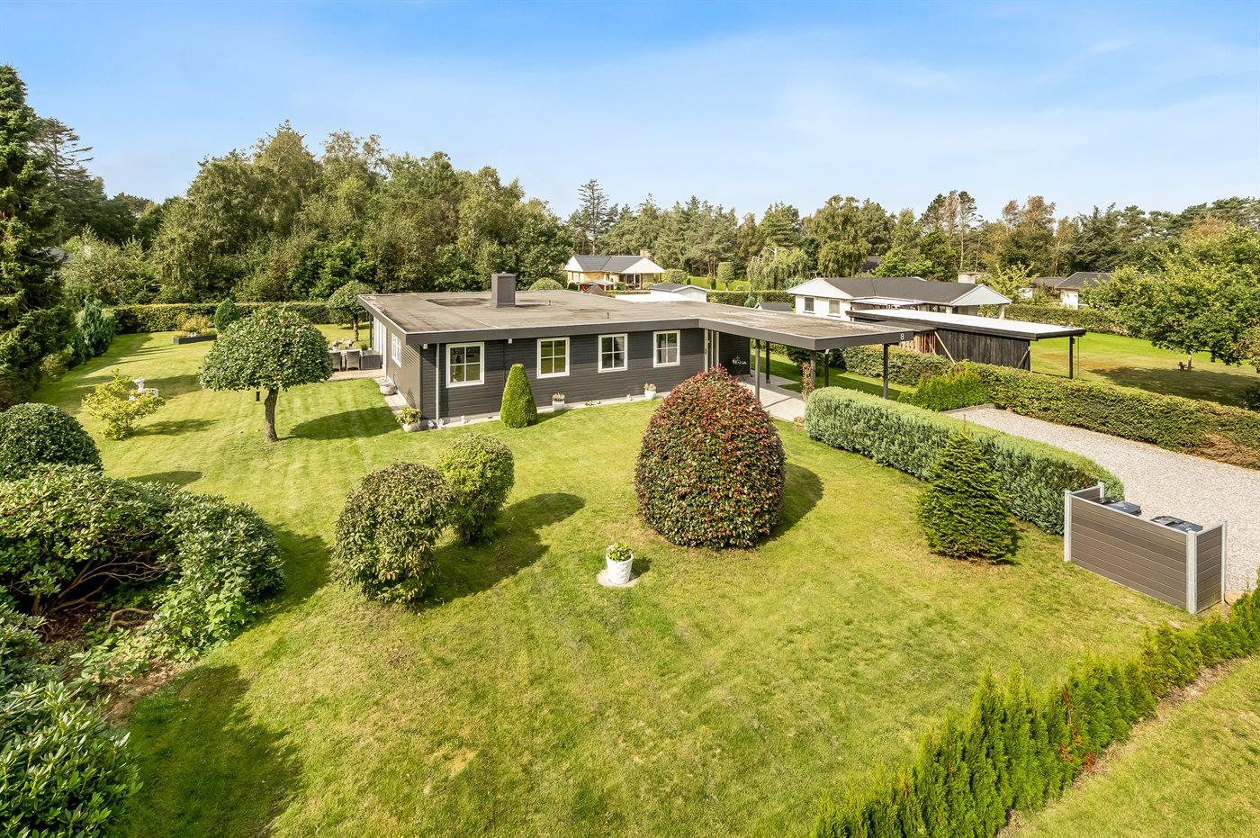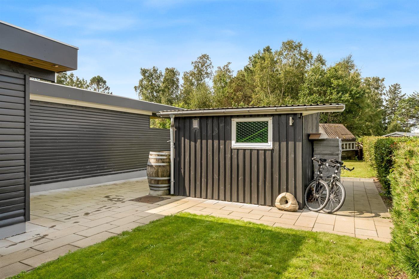 Ferieboligen er beliggende på en 1260 m² stor havegrund. Der er 150 m til havet. Nærmeste forretning er beliggende i en afstand af 3300 m. Der er en golfbane i en afstand af 15000 m. Til ferieboligen hører åbent terrasseareal. Desuden er der overdækket terrasse. Bålsted. Grill til rådighed. Parkering ved ferieboligen.