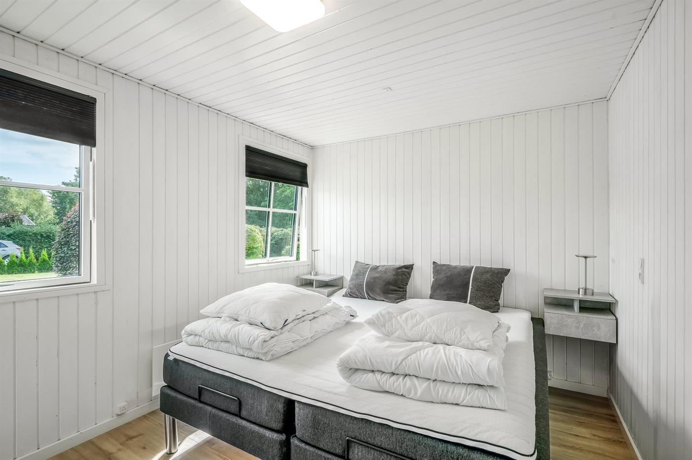 Der er i alt 3 soveværelser. Sovepladserne fordeler sig på: 6 sovepladser i dobbeltsenge. 2 sovepladser i sovesofa (dobbelt). 2 af disse sovepladser befinder sig i stuen.