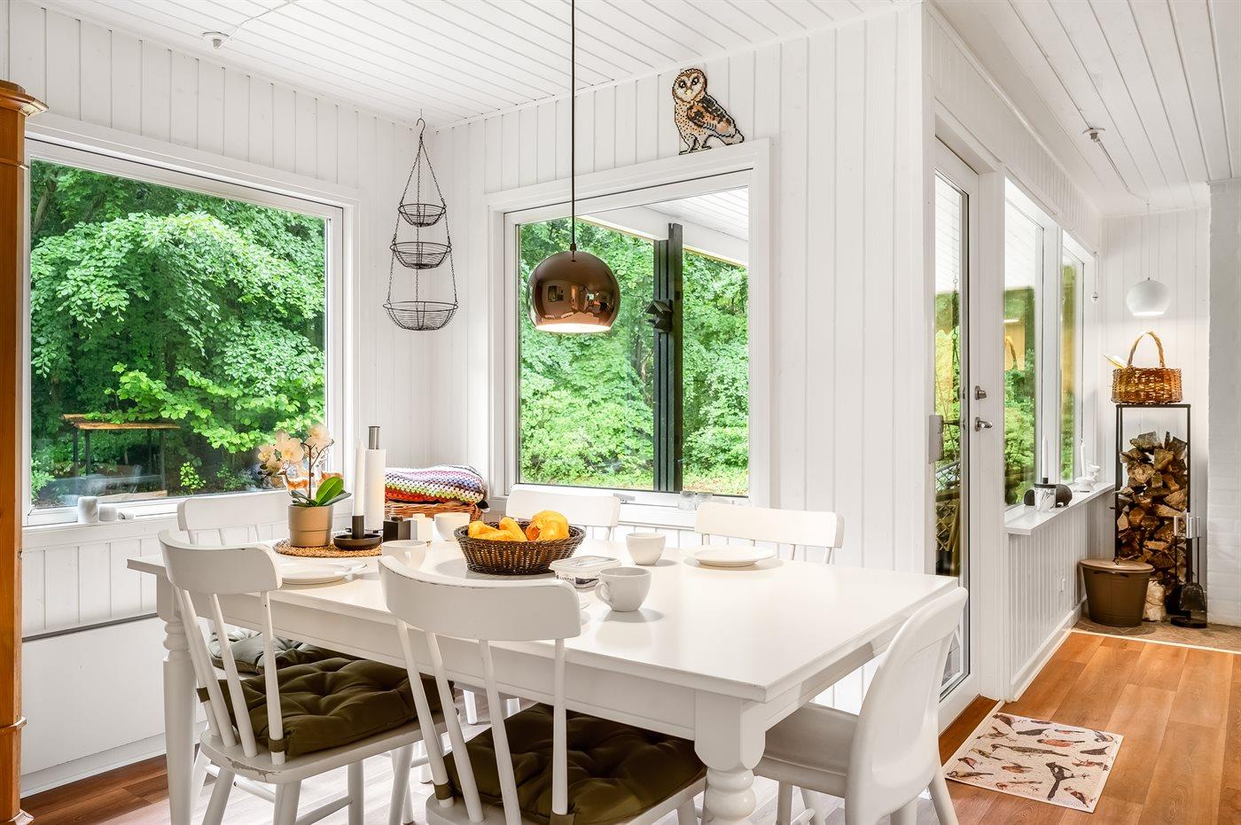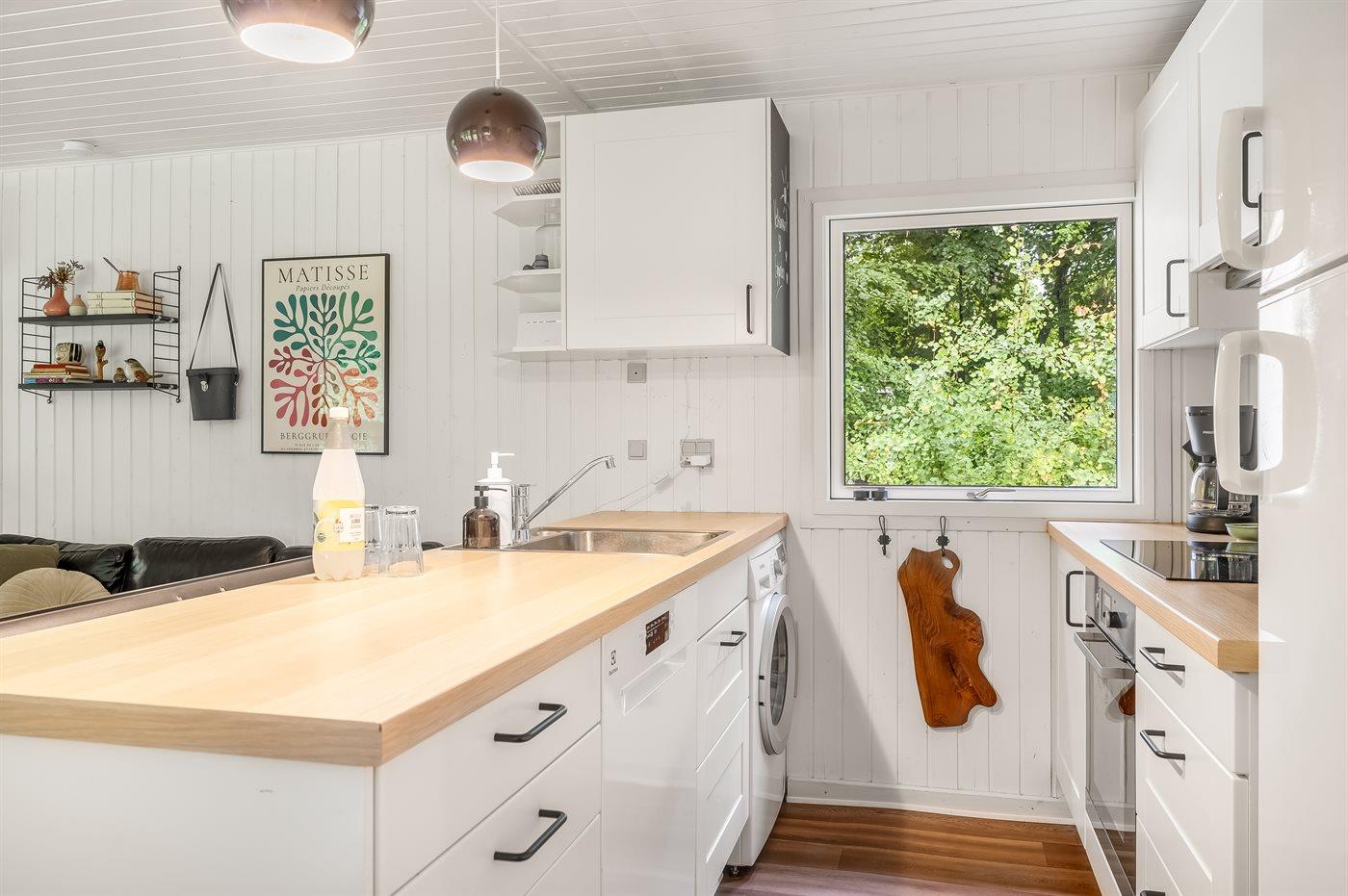 Køkkenet er udstyret med 1 køleskab. Der er 4 keramiske kogeplader, varmluftovn, mikrobølgeovn samt opvaskemaskine.