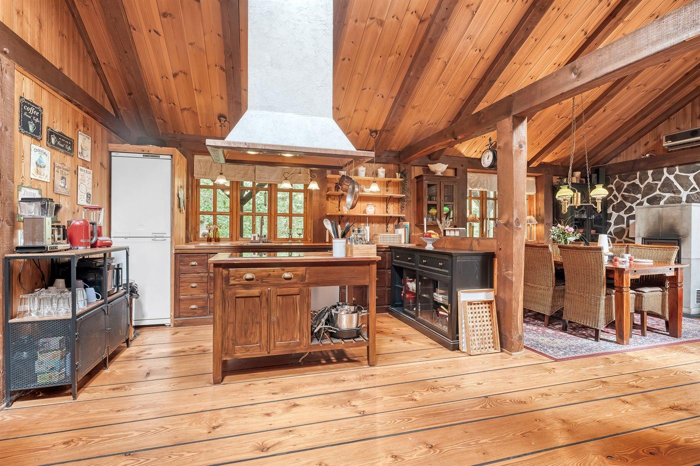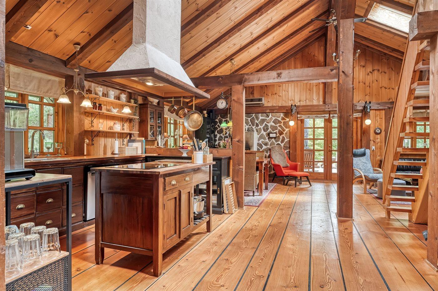 Et fantastisk bjælke-sommerhus med indendørs spa og udendørs vildmarkskar.