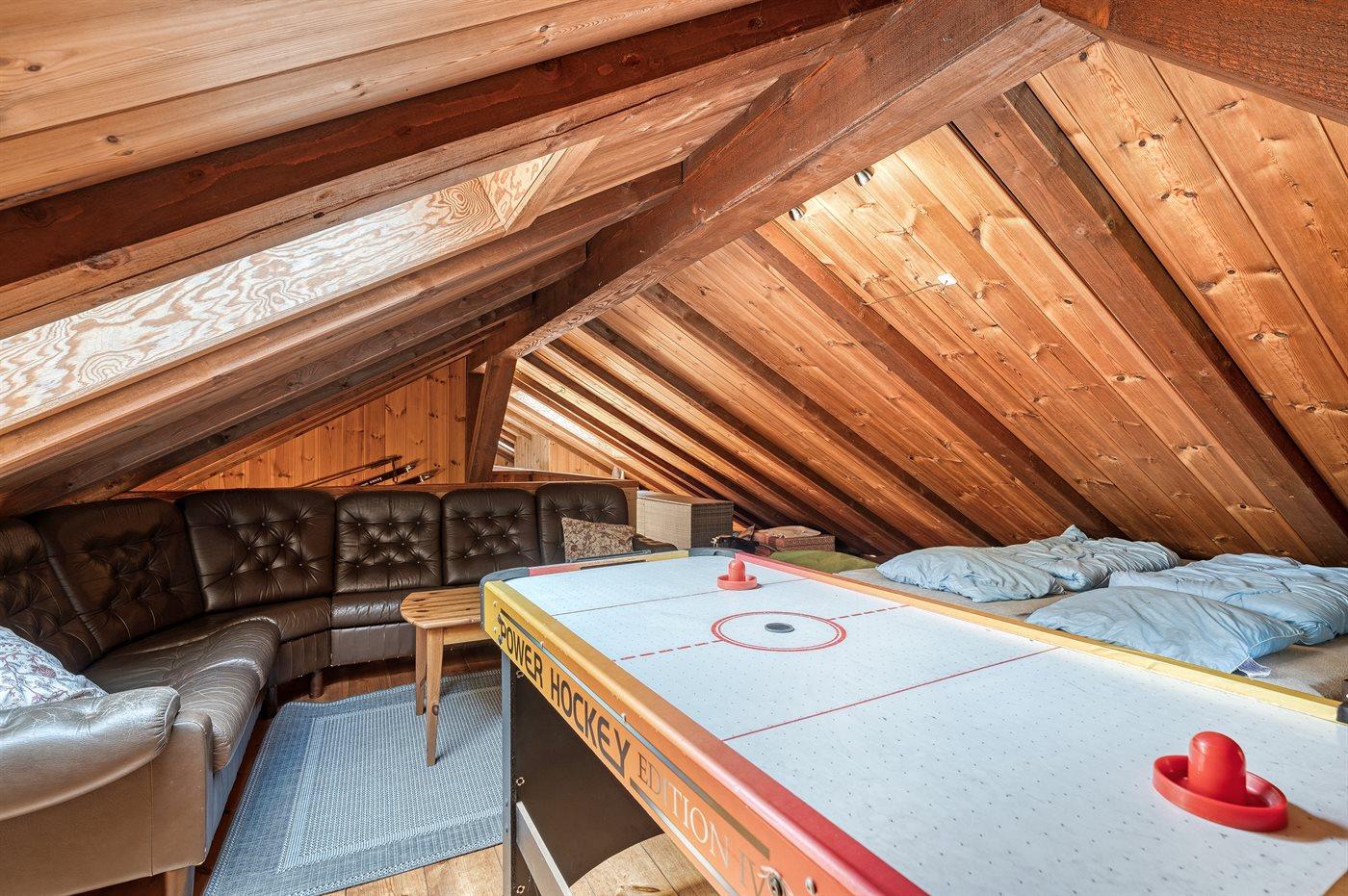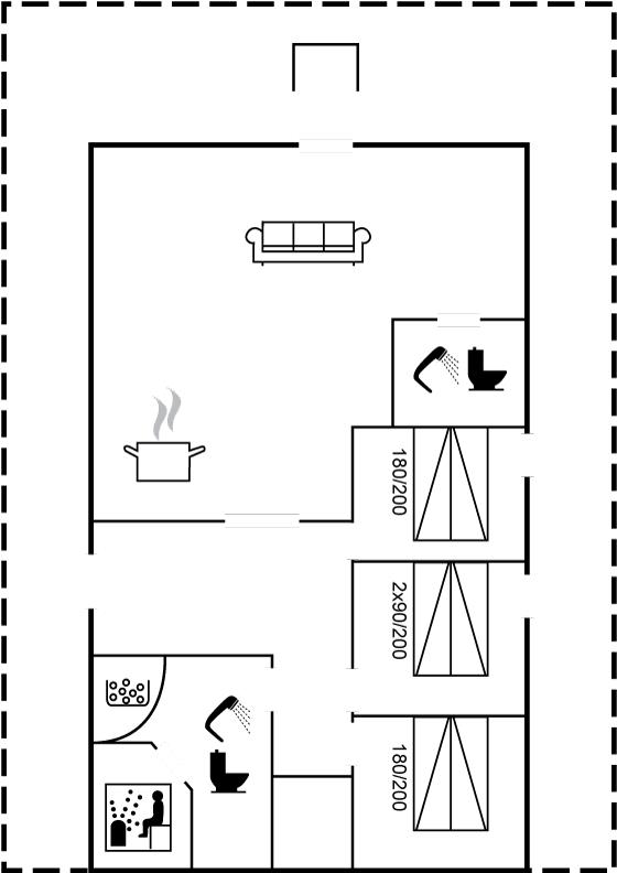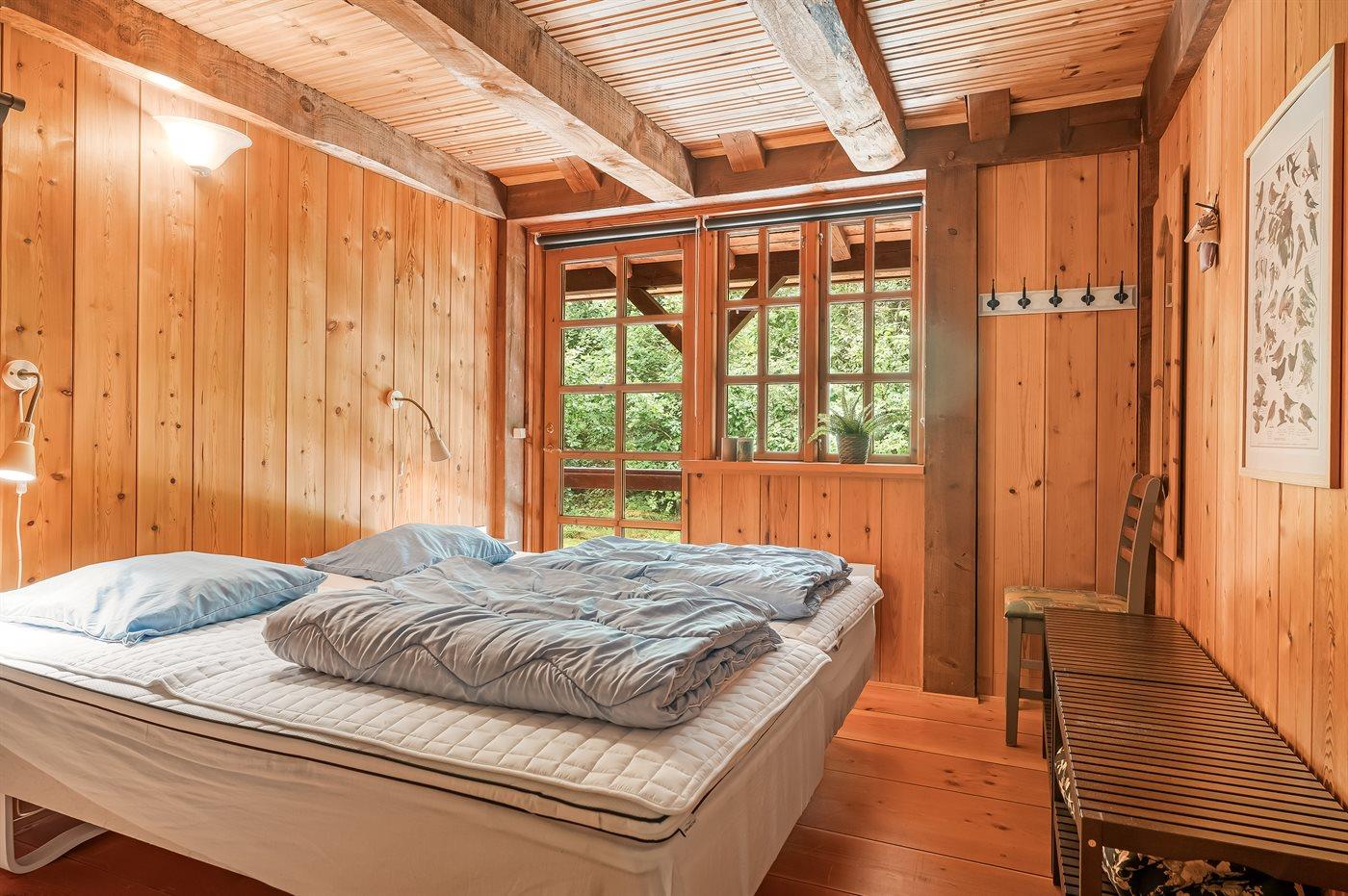 Der er i alt 3 soveværelser. Sovepladserne fordeler sig på: 4 sovepladser i dobbeltsenge. 2 sovepladser i enkeltsenge. 2 sovepladser på madrasser. 2 af disse sovepladser befinder sig på husets hems. Derudover er der 1 stk. barneseng.