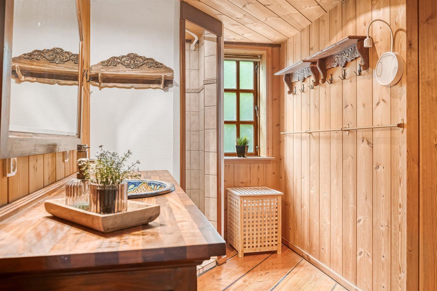 Der er 2 badeværelser med bruseniche og 2 toiletter I saunaen er der mulighed for afslapning.