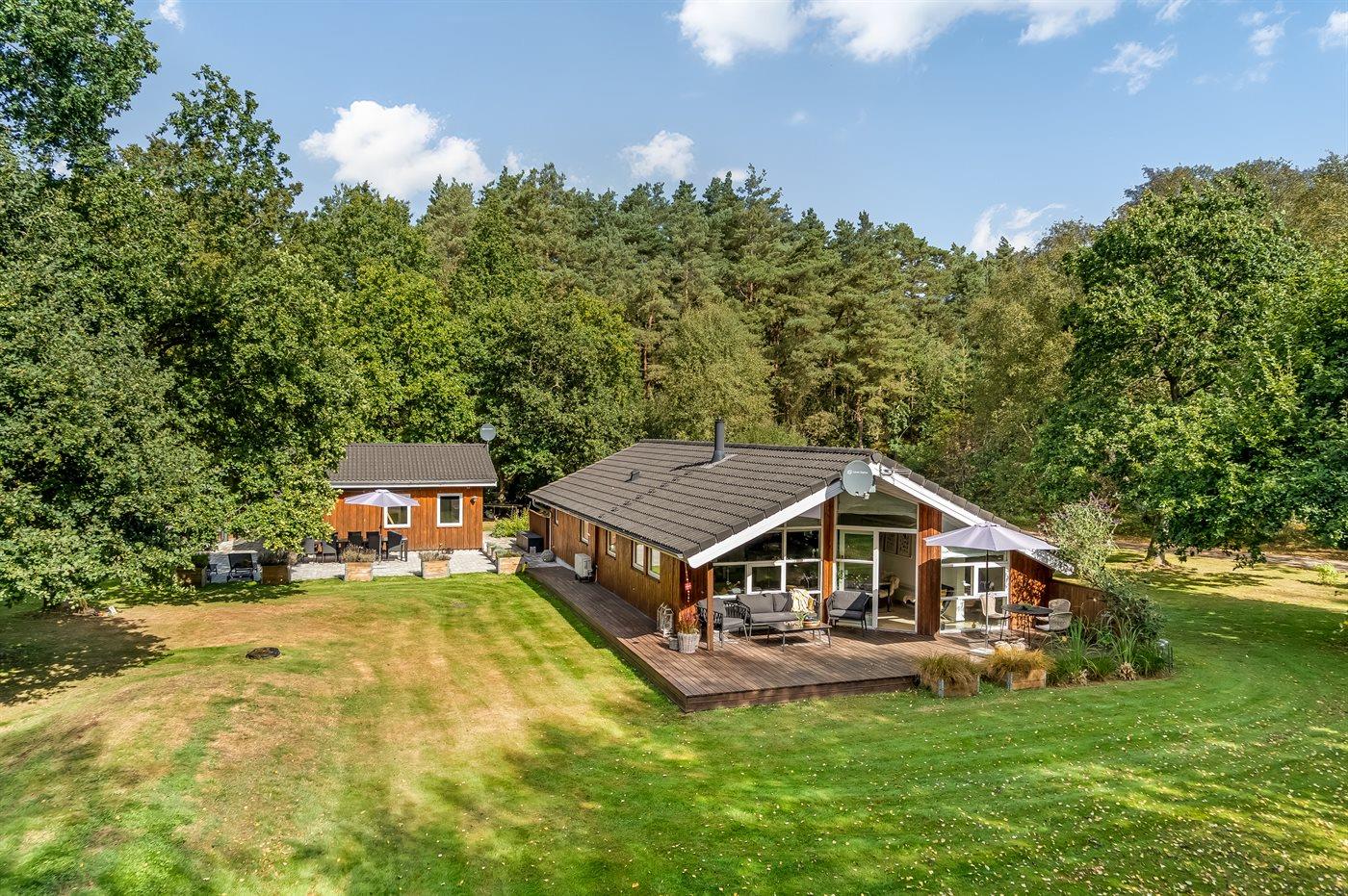 Charmerende sommerhus i Helberskov med spa, sauna og stor have nær fjord og hav.