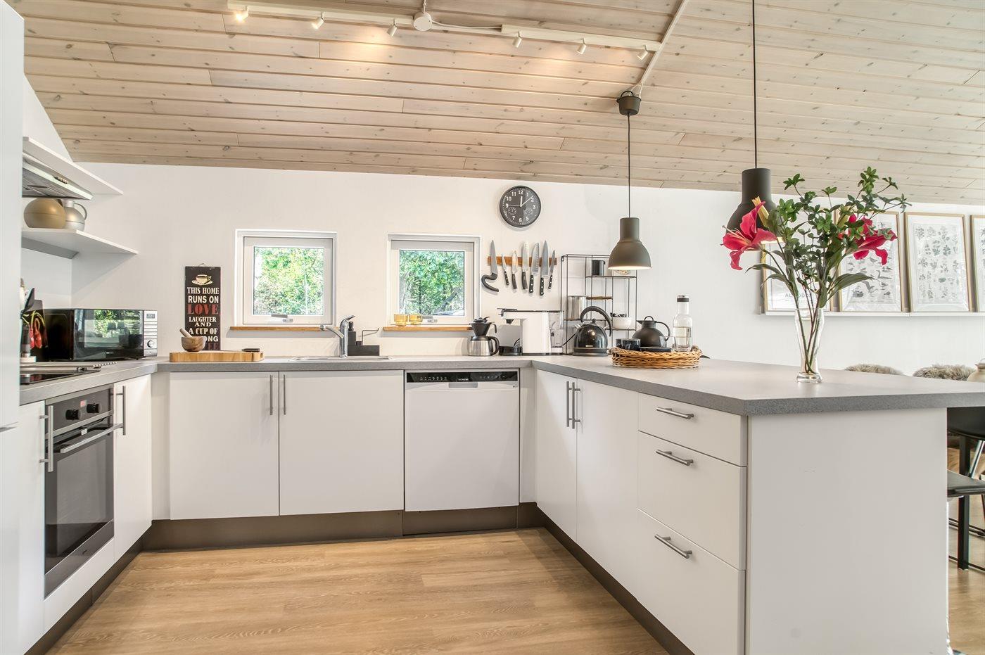 Køkkenet er udstyret med 2 køleskabe. Der er 4 keramiske kogeplader, varmluftovn, mikrobølgeovn, Airfryer samt opvaskemaskine.