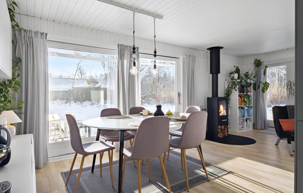 Lad blot hverdagen blive derhjemme og lad turen gå til Helberskov. Der er nemlig lagt op til en afslappende ferie i dette indbydende træhus. Her venter jer en hyggelig, hjemlig atmosfære, hvor udsmykningen er præget af en stor sans for detaljen. I det store, åbne rum forenes det moderne køkken med den hyggelige stue med brændeovn, som bliver samlingspunktet på jeres ophold.