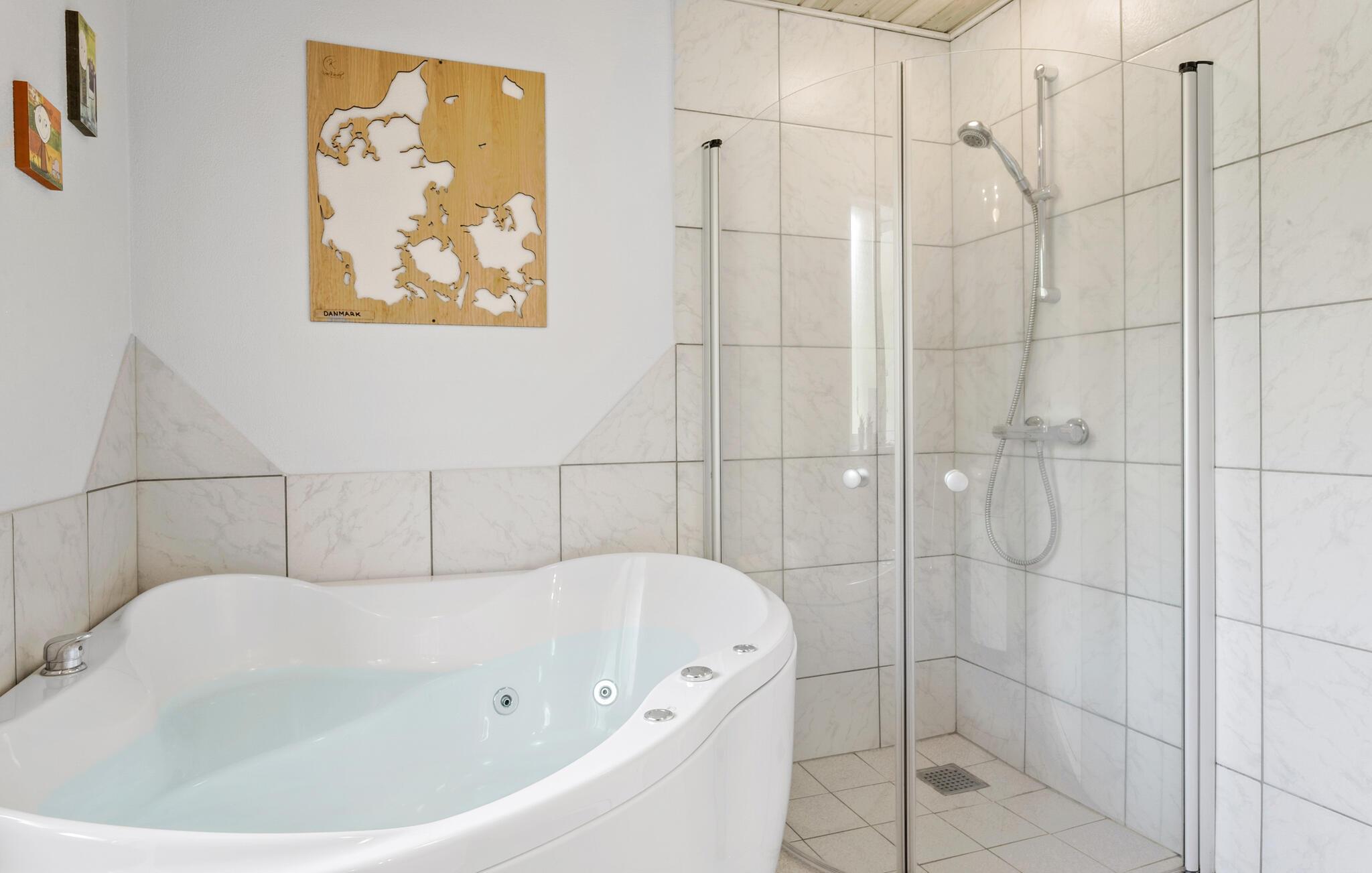 Tag familien under armen og rejs til Helberskov, hvor I tæt på Kattegat og Mariager Fjord finder denne hyggelige perle af en feriebolig. Huset er nydeligt indrettet med velholdte træpaneler, varme farveskalaer og dejlige lysindfald fra flere sider gennem vinduerne, der samtidig giver en fin udsigt til omgivelserne. Skulle vejret bide lidt fra sig, kan I fyre op i brændeovnen og nyde dens knitrende varme til en hyggelig aften med god mad og brætspil eller en god film til sent. Og måske I skal forkæle jer selv med lidt aften-wellness i spabadet?