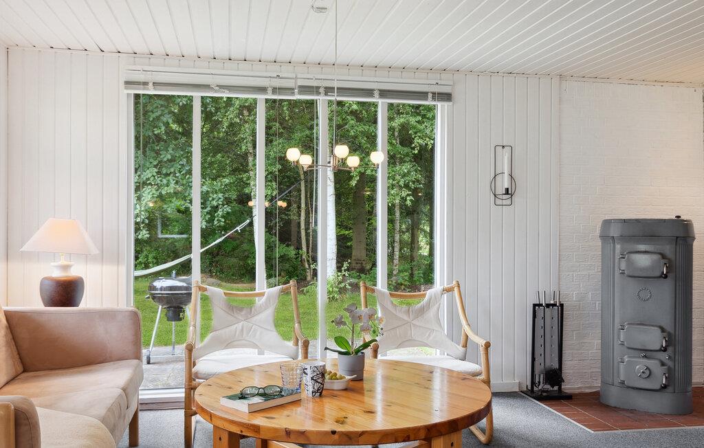 Dette charmerende feriehus har en rolig beliggenhed meget tæt på Kattegat. Det ligger på en naturgrund med gamle træer og er hyggeligt indrettet med hvidmalede trævægge og et dejligt køkken, hvor I kan give jer god tid til madlavningen, mens børnene slapper af i stuen. Sidst på dagen kan I sætte jer til rette i sofaen med udsigt til haven og lytte til brændeovnens knitren, hvis vejret er lidt køligt en dag.