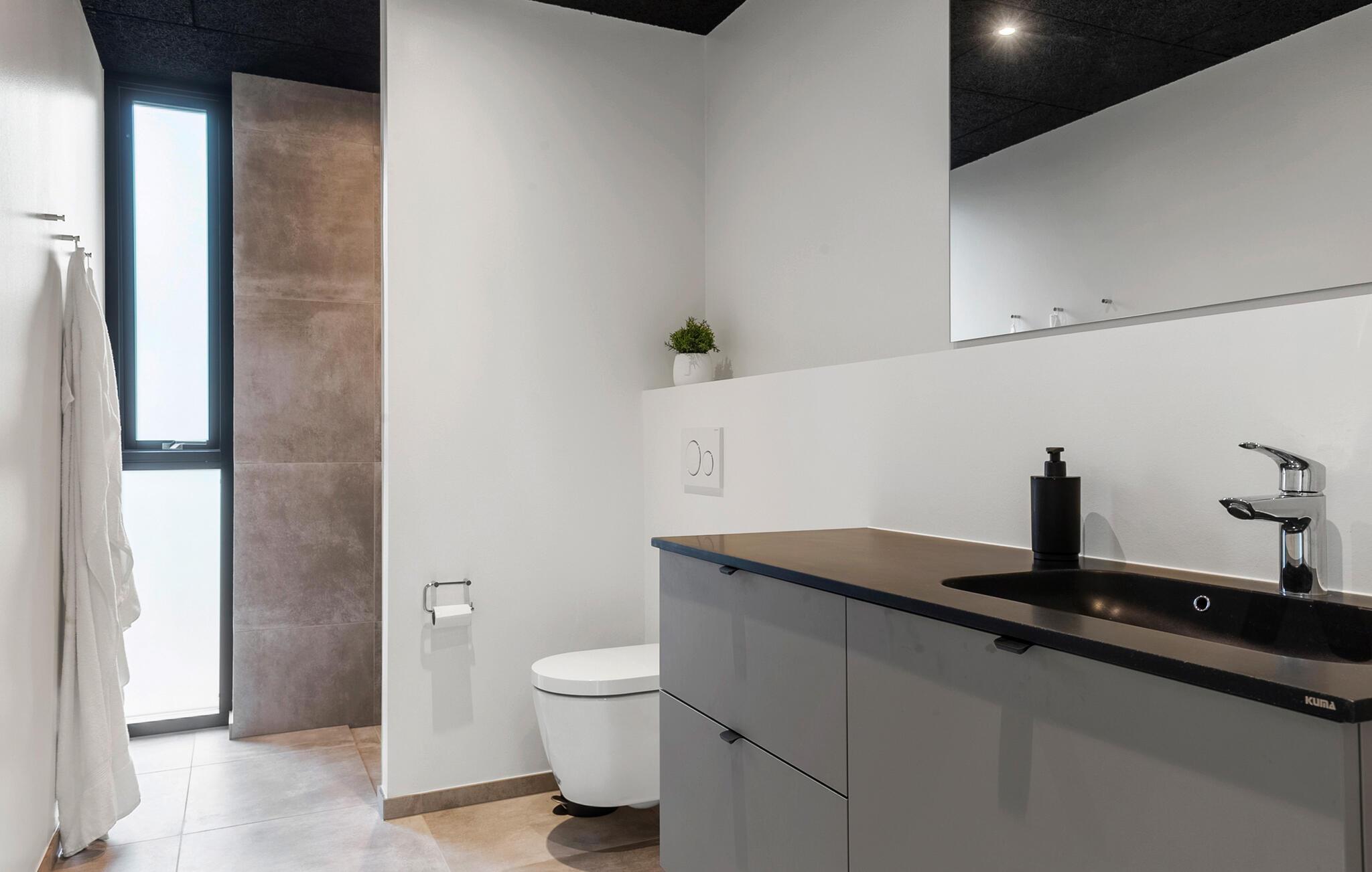 Badeværelse (nr. 1) - WC. Varmt og koldt vand. Bruser