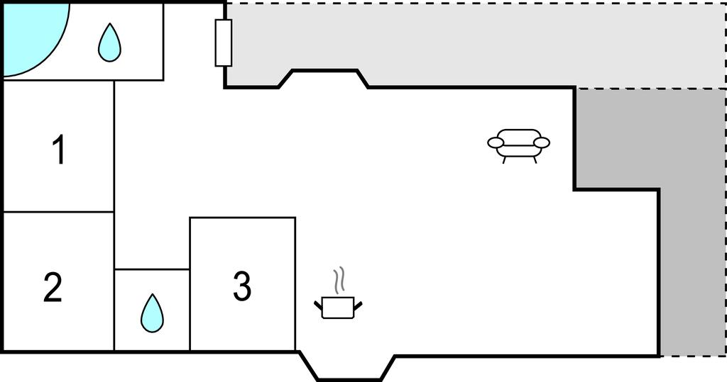 Badeværelse 11m2 (nr. 1) - WC. Varmt og koldt vand. Bruser