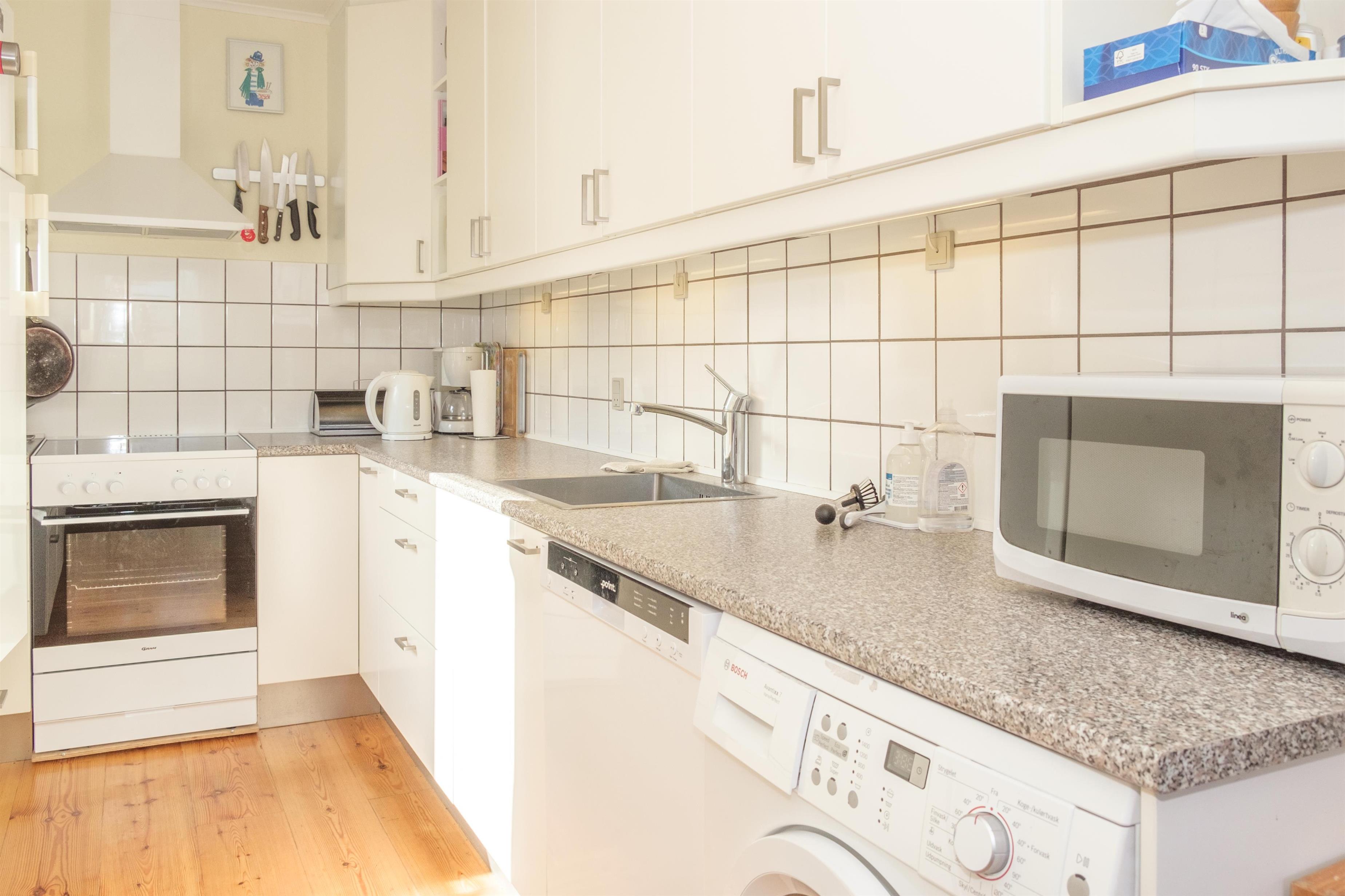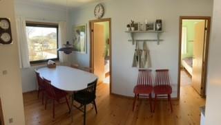 Hovedhuset rummer stor, lys stue med havudsigt, spiseplads til 8 personer, sofamøblement og lænestole, brændeovn, TV med danske (kun gratis) kanaler samt radio. I halvåben forbindelse med stuen er der praktisk og velindrettet køkken med komfur med keramiske kogeplader og ovn, køle-/fryseskab, opvaskemaskine, vaskemaskine og mikrobølgeovn. To lyse soveværelser, med 2 enkelt senge i hver. Pænt, ældre flisebadeværelse med bruseniche og gulvvarme. Annekset har lille stue med havudsigt, TV med danske (kun gratis), samt et lille thekøkken i entréen. Nyere flisebadeværelse med gulvvarme og bruseniche. Desuden er her 1 værelse med dobbeltseng og 1 værelse med 2 enkeltsenge, hvilket er sammenlagt med hovedhuset giver 8 sovepladser. Der er varmepumpe i begge huse. Internetadgang.