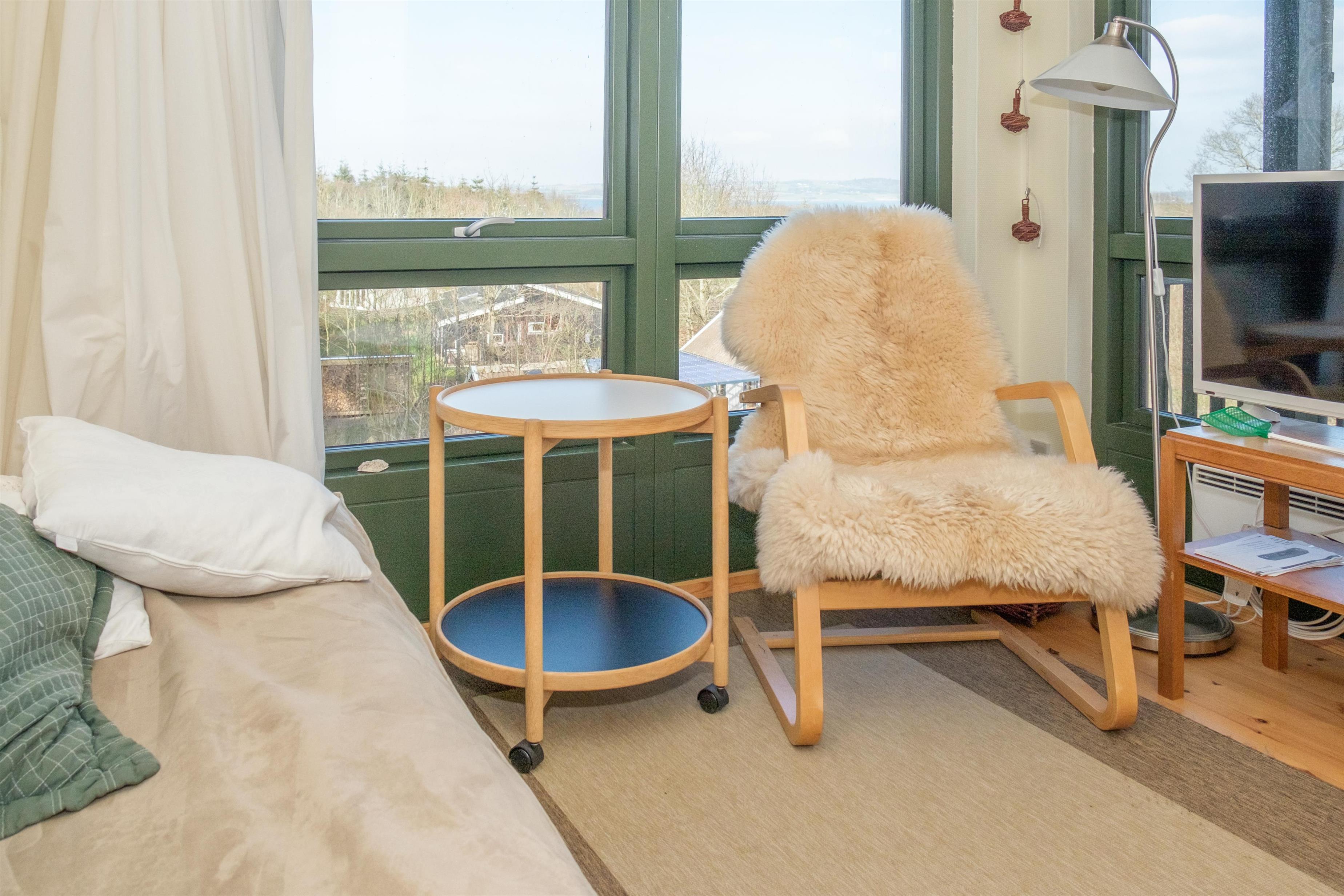 Højt beliggende ved Fejrup Strand på det nordvestlige Helgenæs og med skøn udsigt over Begtrup Vig finder man dette ældre, traditionelle feriehus med hygge og atmosfære. Både hovedhus og anneks har eget badeværelse og er forbundet via en dejlig træterrasse med havemøbler, liggestole og parasol. Der er fine opholdsarealer og lækroge omkring husene, på den store grund er der opstillet trampolin, og desuden er der aflåseligt udhus med diverse spil og legeredskaber. Et godt valg for den store eller to familier.