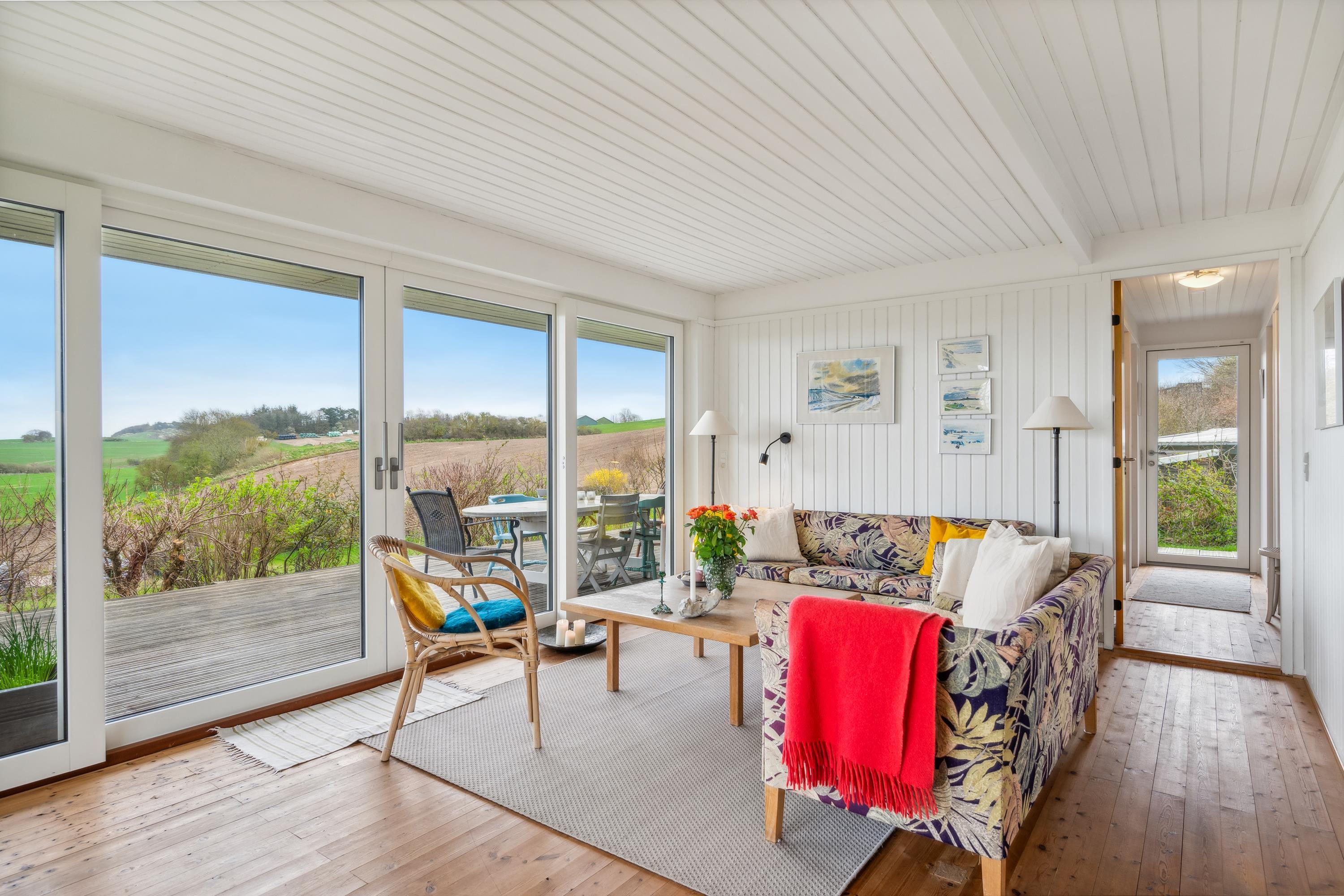 På det smukke Mols finder man dette rigtig hyggelige hus, hvor der fra terrassen er den smukkeste udsigt over landskab og til vandet. Her finder man en hyggelig lys og velmøbleret stue med varmepumpe og hvorfra der udgang til en stor terrasse. Dejlig køkkenafdeling med b.la. opvaskemaskine. Fra køkkenet er der udgang til endnu en stor terrasse med havemøbler og liggestole og hvoraf en del af terrassen er overdækket. Husets soveværelser fordeler sig på 3 hyggelige værrelser med dobbeltsenge. Pænt badeværelse med bruseniche. Tv foregår med Chromecast/internet. Til de små feriegæster er der en høj stol. Huset er beliggende på en skrående grund med stor græsplæne. Her findes også et hyggeligt bålsted, som man kan samles om og lave snobrød.