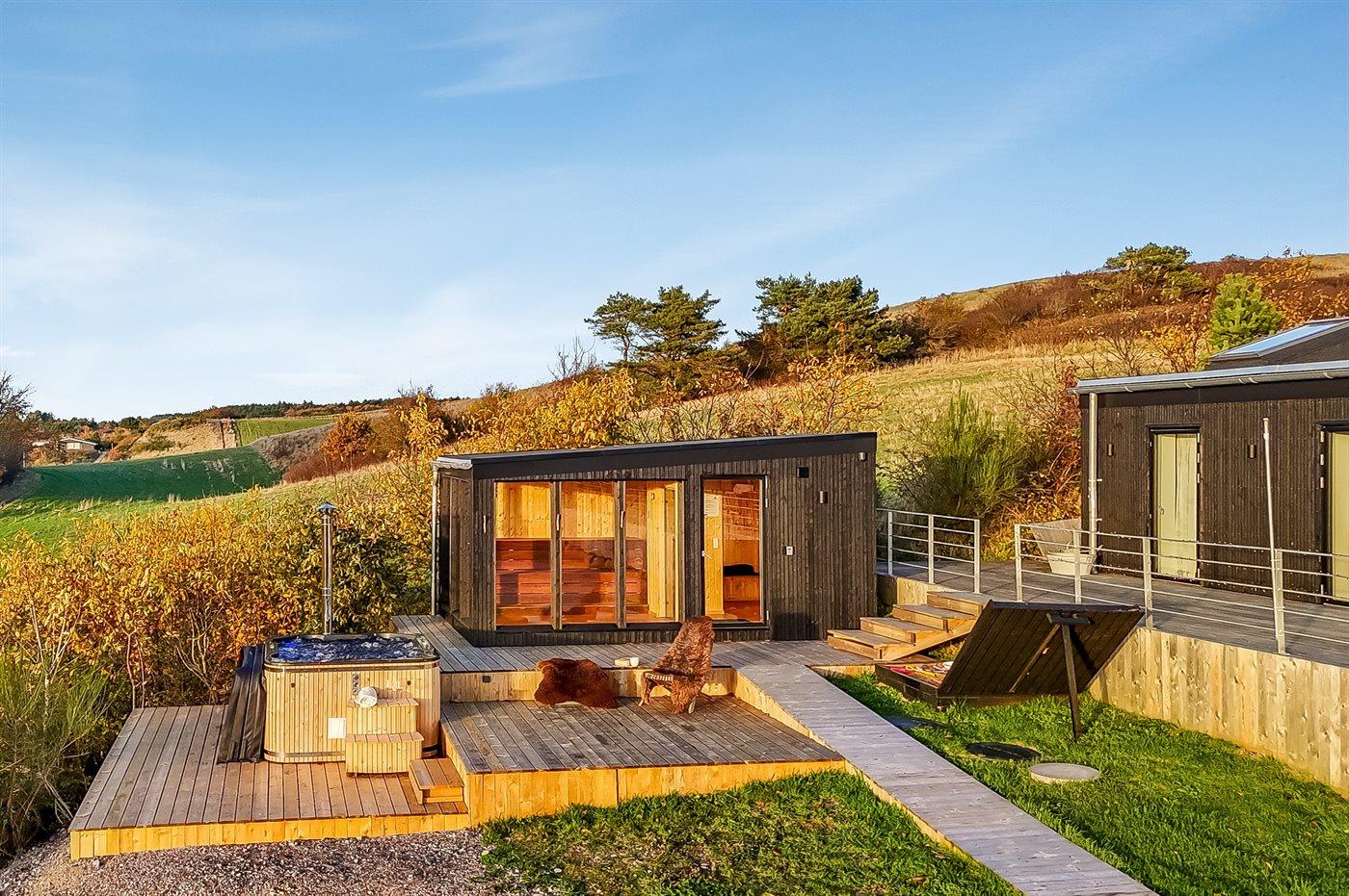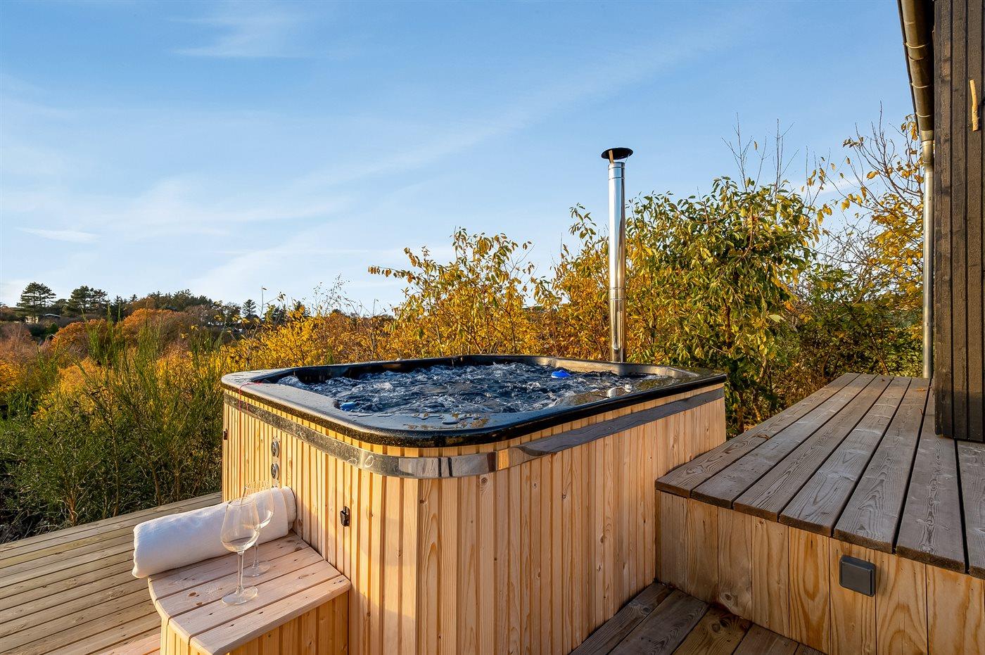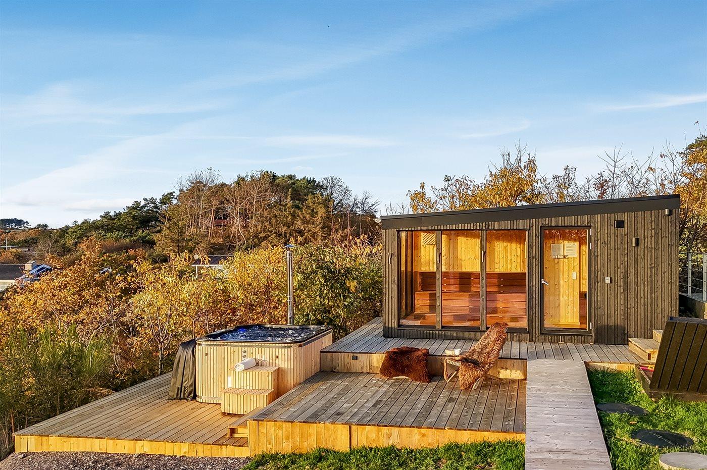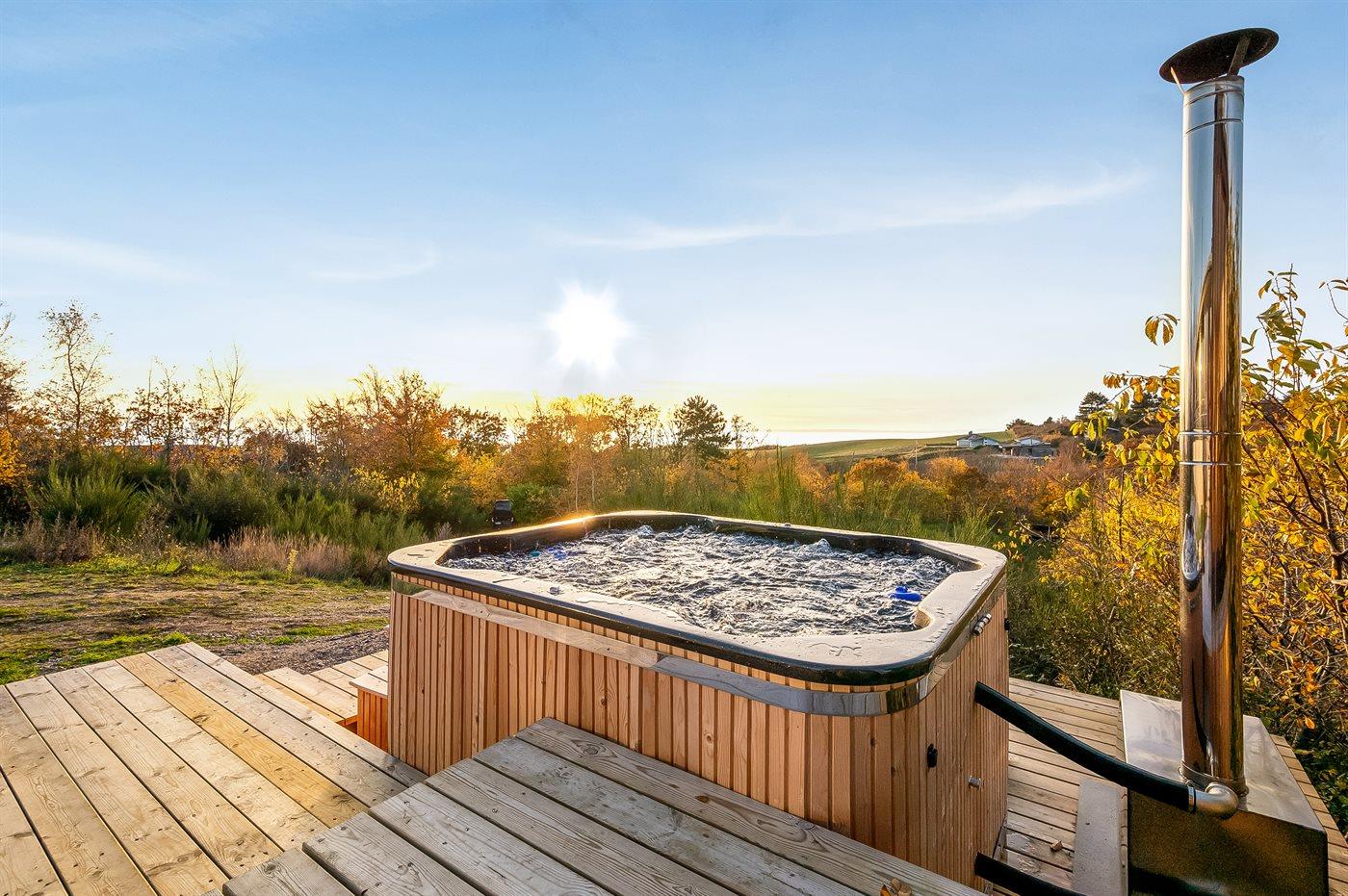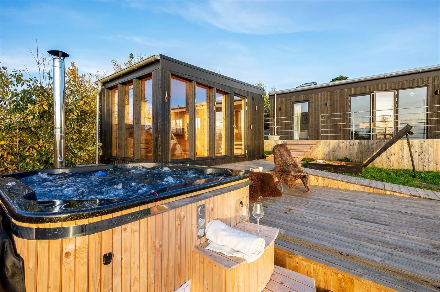 Der er mulighed for afslapning i det udendørs vildmarkskar til 7 personer.