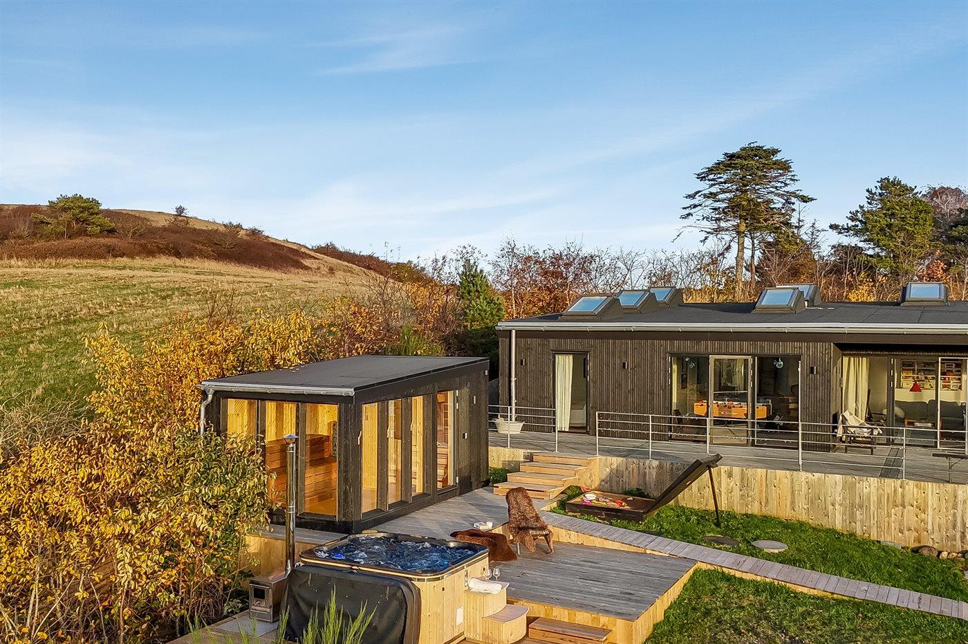 Moderne sommerhus med havudsigt og aktivitetsrum