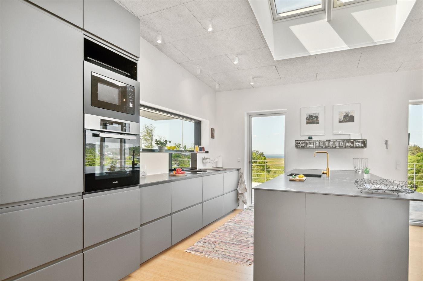 Køkkenet er udstyret med 2 køleskabe. Der er 4 induktionskogeplader, varmluftovn, mikrobølgeovn samt opvaskemaskine.