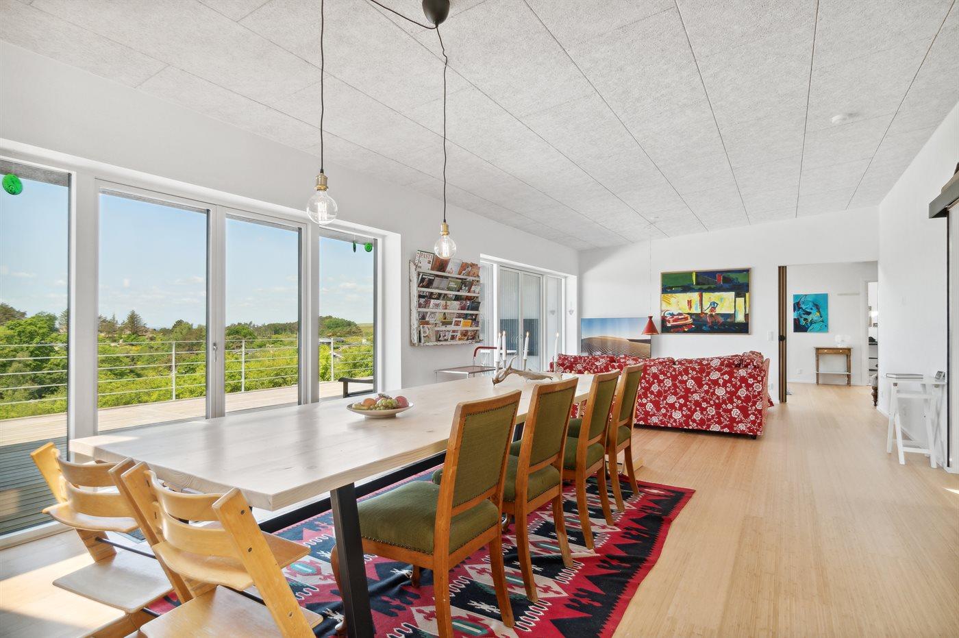 Moderne sommerhus på Helgenæs med fantastisk havudsigt og aktivitetsrum, perfekt til afslapning og sjov.