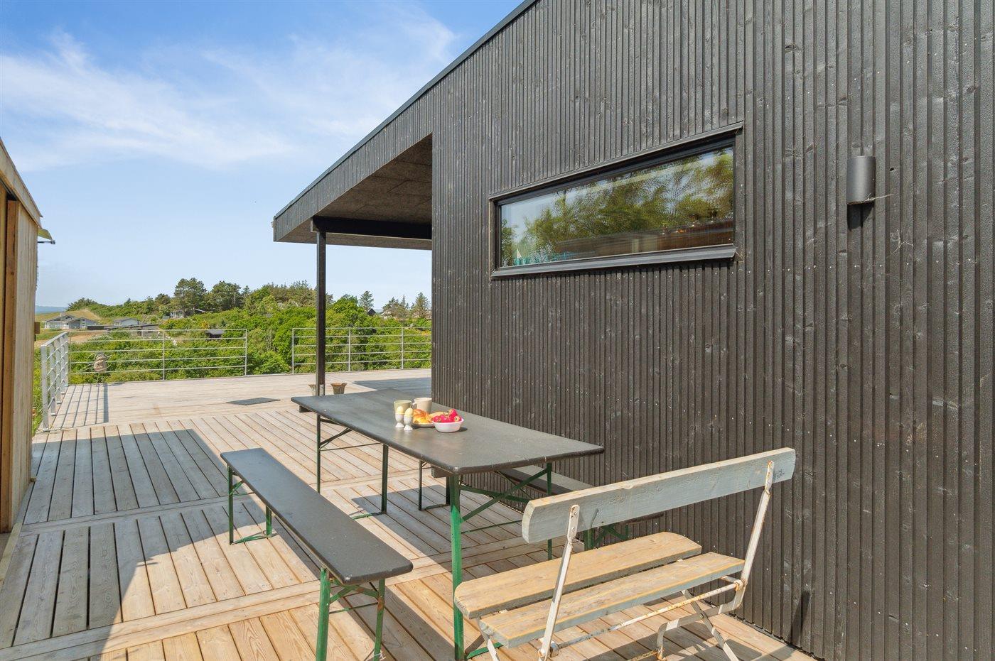 Huset er ikke bare nyopført i 2023, det er skabt med en kærlighed til detaljen og bygget med udsøgte kvalitetsmaterialer, der efterlader intet til tilfældighederne. Den store terrasse strækker sig ud fra alle rum og inviterer til uendelige øjeblikke af afslapning og fordybelse. Her kan man nyde solens stråler, mens man indsnuser den friske havluft og lader sig forføre af havets kraftfulde skønhed. På bagsiden af huset, pakket væk i bakken, findes morgensol og hele to udebrusere til de morgenfriske.