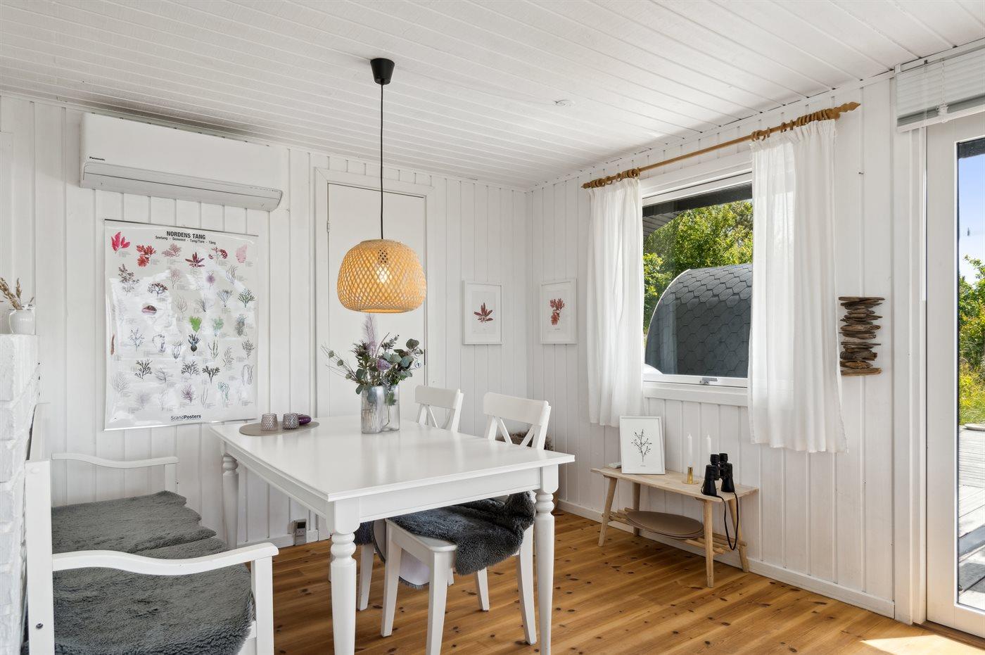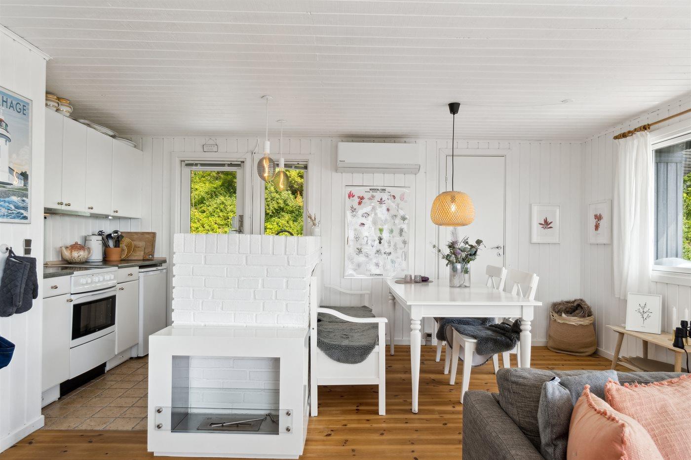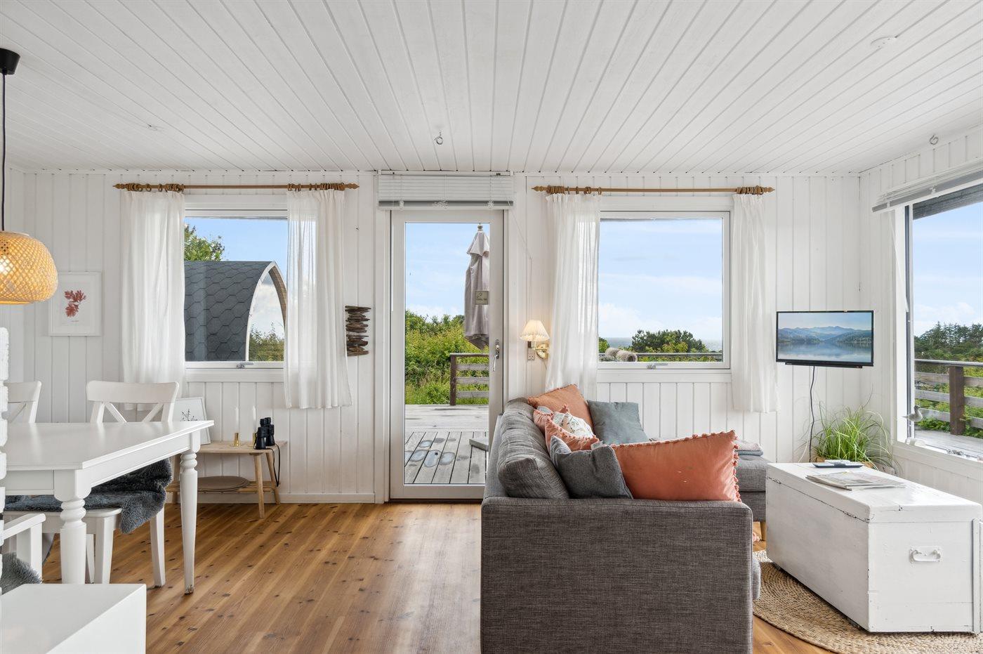 Indvendig fremstår huset lyst og moderne, men det er samtidigt lykkes med den store modernisering, som skete i 2023, at bevare en hyggelig atmosfære og stemning. Udsigten er fantastisk inde fra huset og nærmest ligegyldigt, hvor man befinder sig i huset, er udsigten i højsædet. Sommerhuset er godt indrettet og passer rigtig fint til f.eks. en familie med 2-3 børn eller blot et par. Der er også mulighed for at have et kæledyr med på ferien.