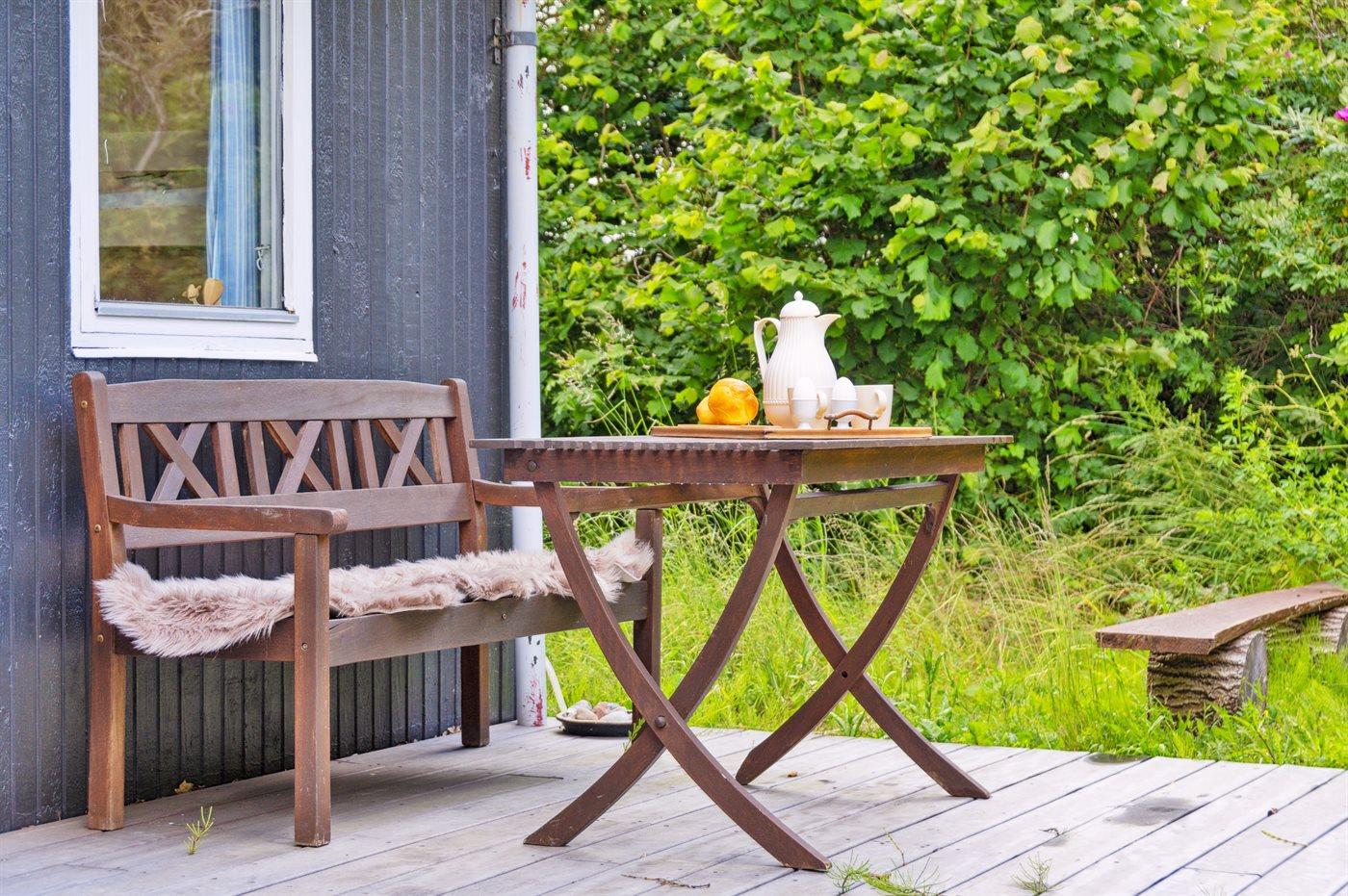 Ferieboligen er beliggende på en 1200 m² stor naturgrund. Der er 700 m til havet. Nærmeste forretning er beliggende i en afstand af 4000 m. Til ferieboligen hører åbent terrasseareal. Der er redskabsrum. Bålsted. Udendørs sauna. Udendørs bruser. Grill til rådighed.