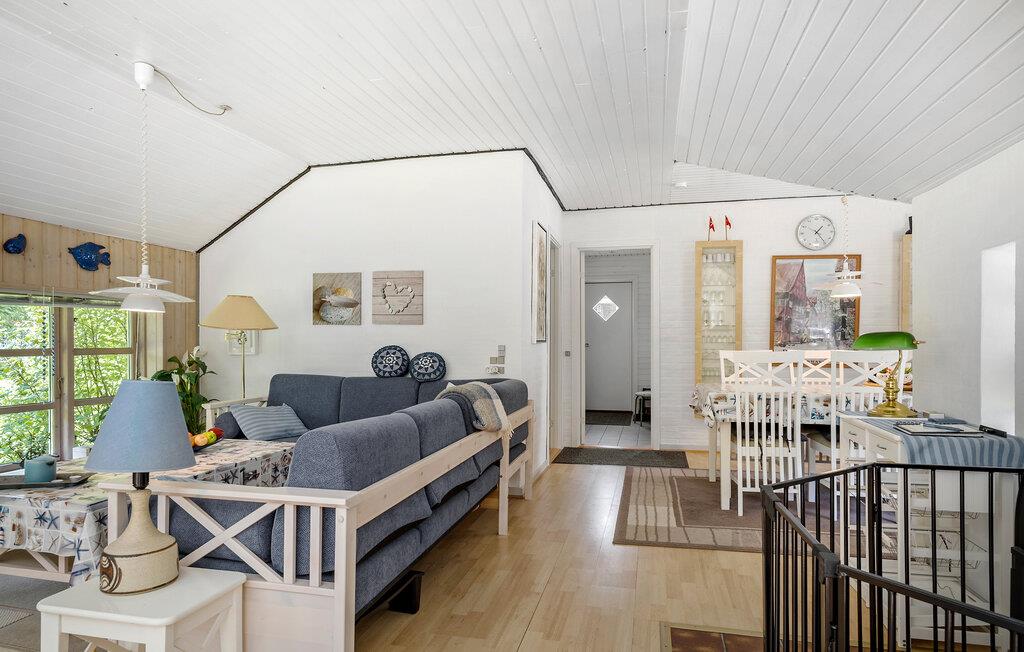 Sommerhuset kombinerer komfort, naturoplevelser og en hyggelig stemning. De store vinduer lukker lyset og den skønne udsigt til det grønne natur ind. I stuen sørger den knitrende brændeovn for varme og hygge, så I kan holde filmaftenener i den varme, bløde sofa. Pak jeres yndlingsbrætspil med og find sammen om spisebordet til en spilleaften. I forlængelse af spiseområdet ligger køkkenet, som er åbent og giver mulighed for at have samtalerne kørende, uanset hvad I giver jer til. Fra køkkenet kan I træde ud på terrassen, hvor I kan smide benene op og slappe af i fulde drag.