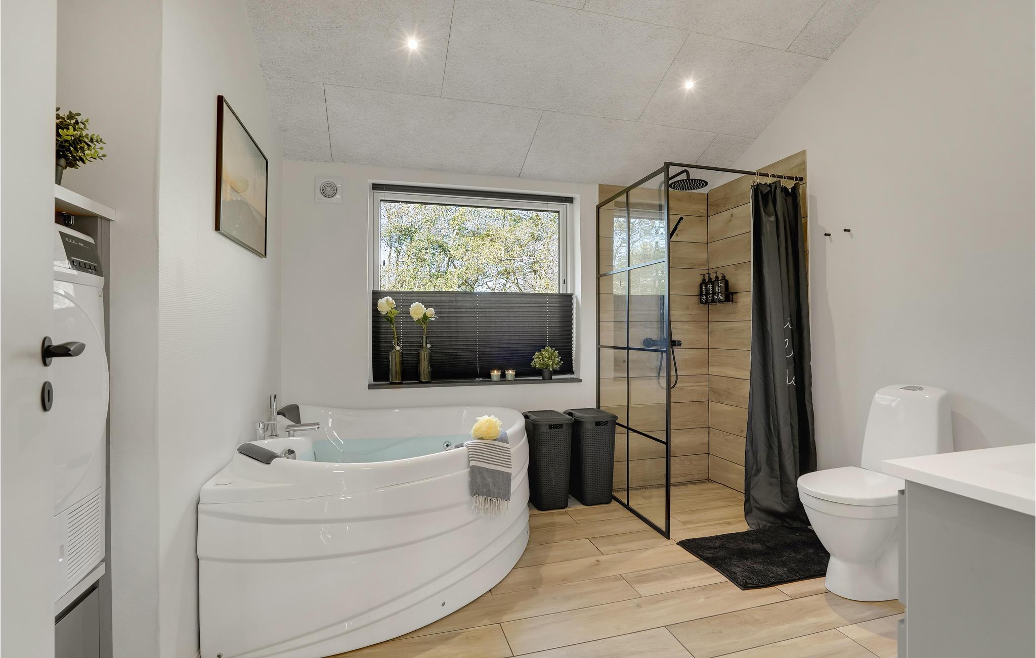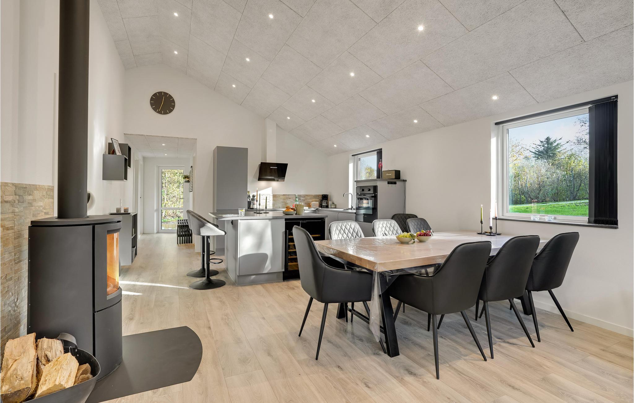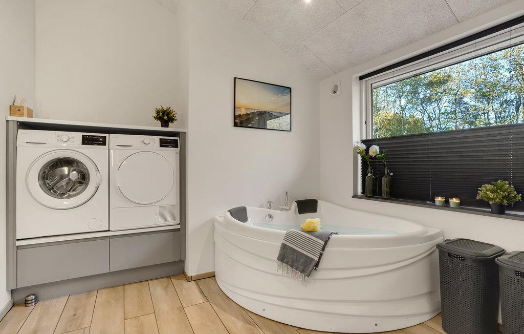Her vil hele familien føle sig hjemme fra første sekund. Udforsk det smukke og lyse feriehus, hvor den store opholdsstue, som kombinerer ophold, spisning og madlavning, er det ideelle samlingspunkt. Den moderne og komfortable indretning giver hele huset en dejlig atmosfære af velvære og giver jer rig mulighed for at slappe af. Glæd jer til masser af afslapning og velvære i det indendørs boblebad eller på terrassen, hvor I kan nyde solen og en god bog mens børnene kan slå sig løs på trampolinen eller på de andre legepladsredskaber.