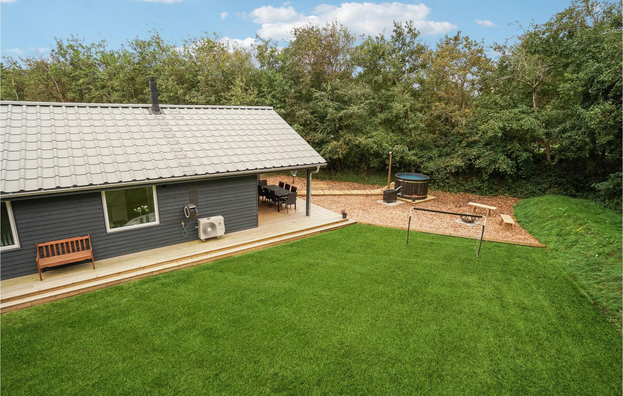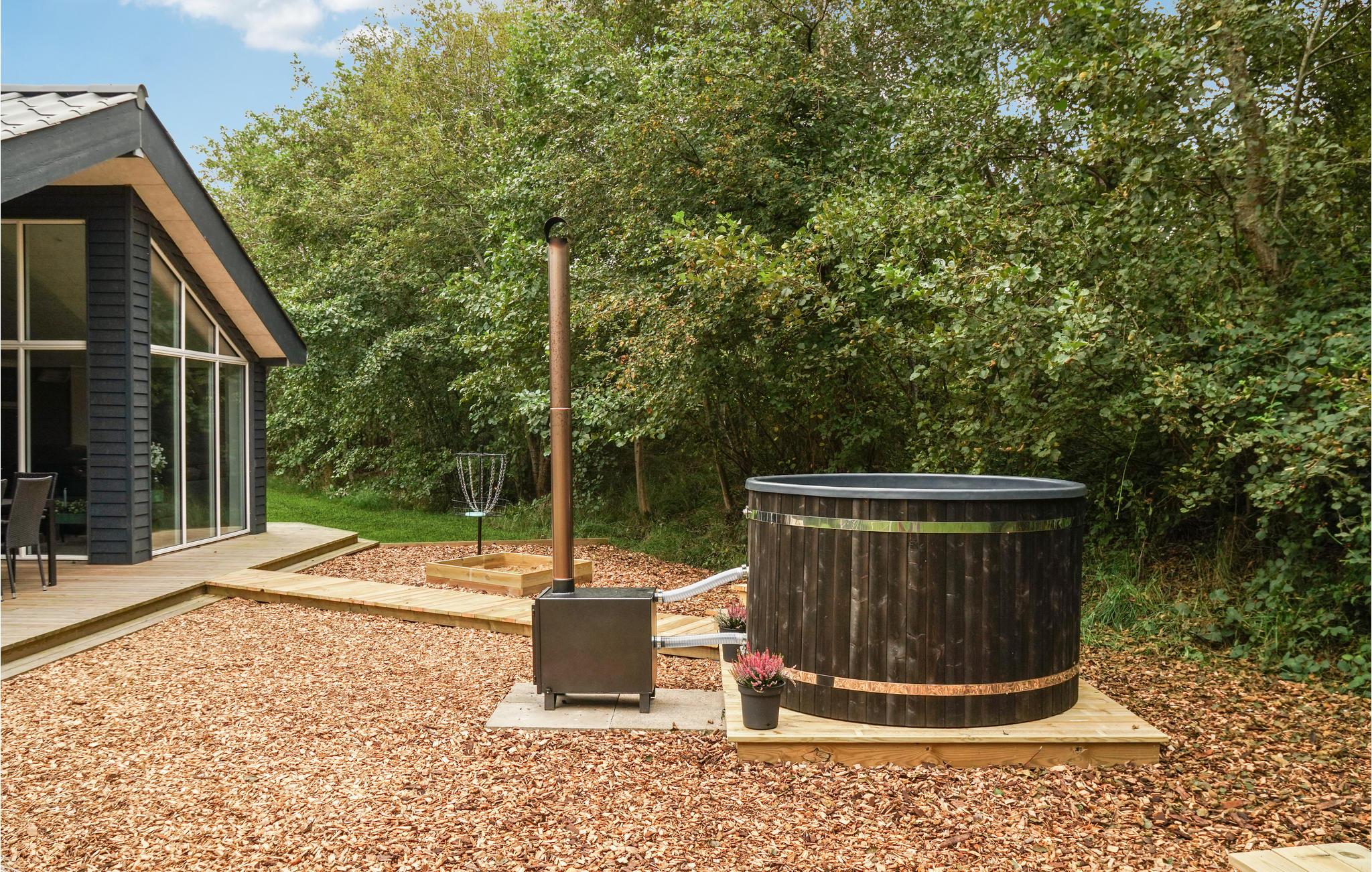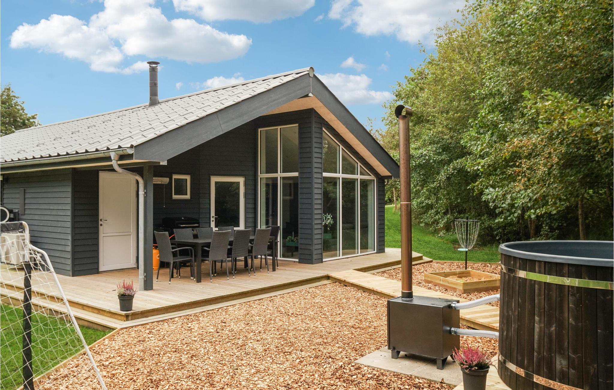 Smukt feriehus ved Helligsø Strand med boblebad, trampolin og tæt på natur og strand.