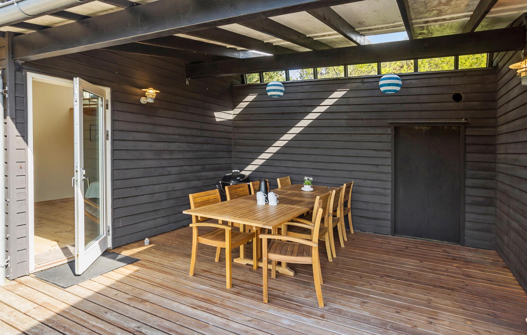 Fra stuen kan I trække ud på verandaen og den solrige træterrasse. Nyd udsigten over fjorden, tænd op i grillen og tilbered jeres livretter, mens aftensolen luner. Huset ligger på en dejlig grund, hvor I finder rigeligt med plads til både leg og afslapning i løbet af dagen.