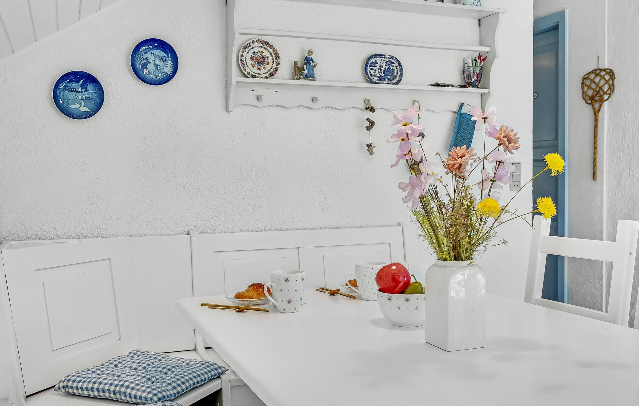 Velkommen til dette charmerende sommerhus, der let kan rumme en familie takket være de tre soveværelser. Husets hjerte er opholdsrummet med spisestue og sofahjørne, hvor I kan nyde jeres feriemåltider eller slappe af til lyden af den knitrende ild i brændeovnen. Huset har også et lille køkken.