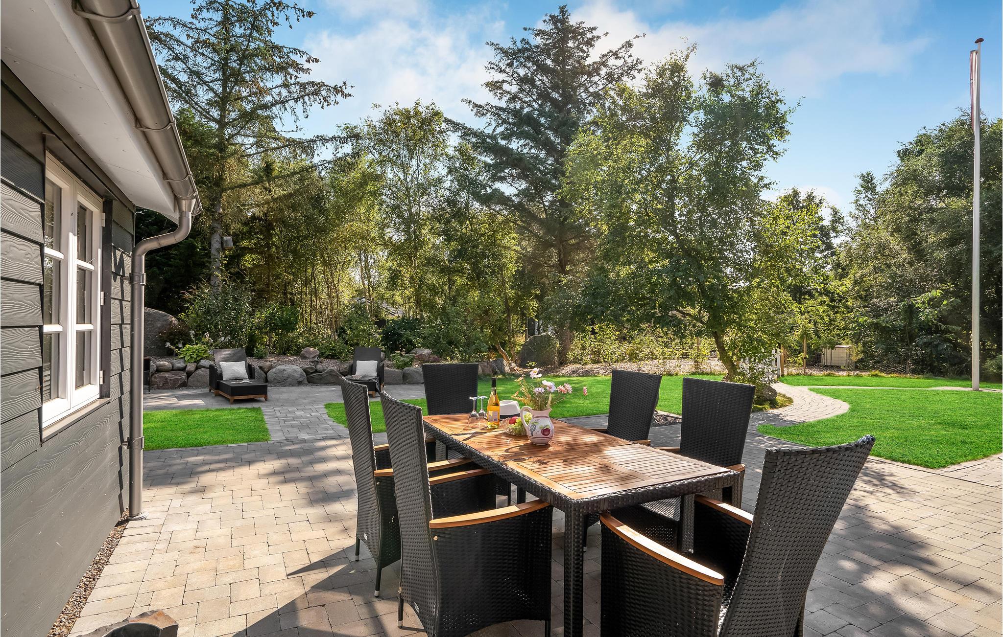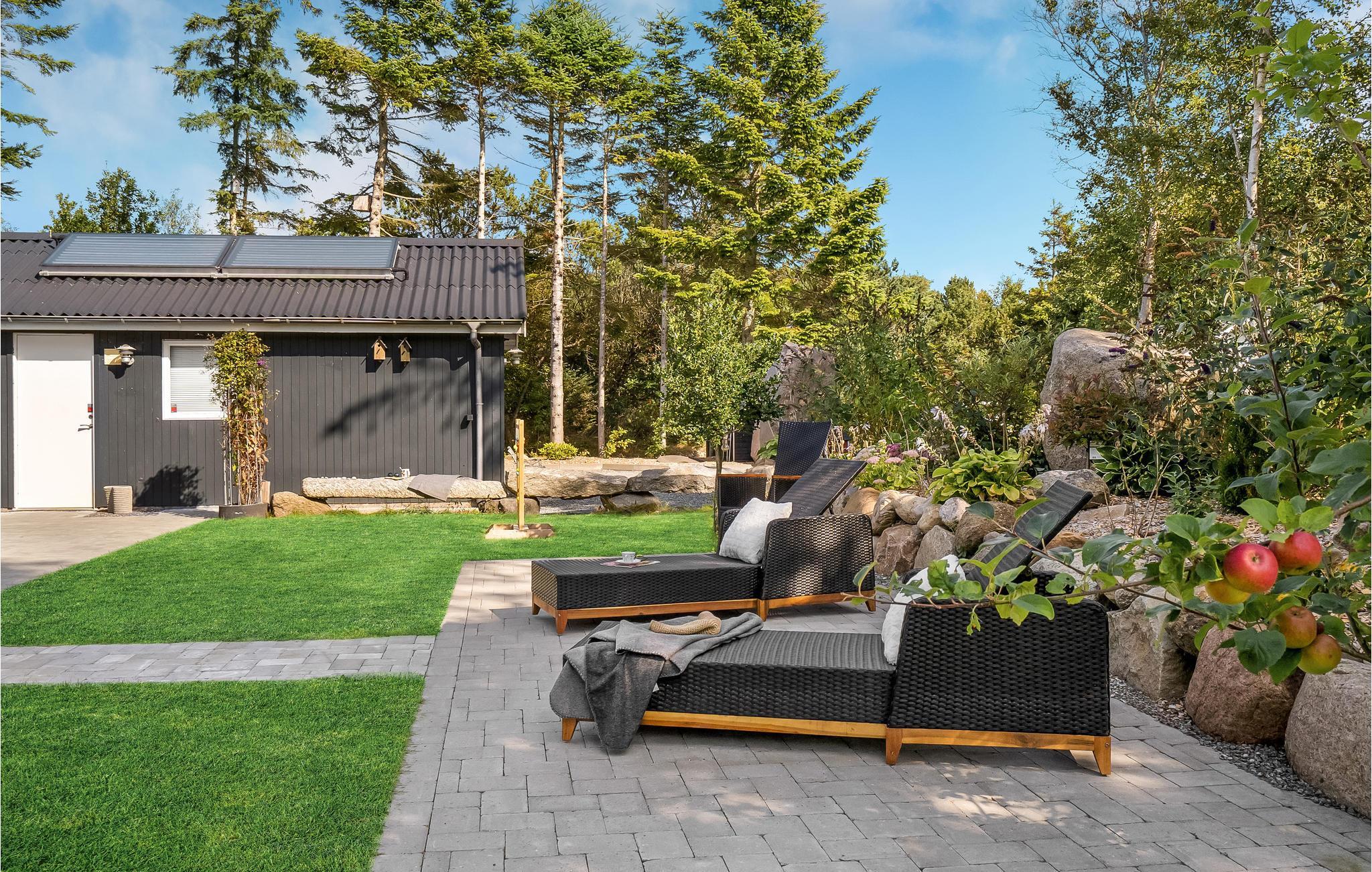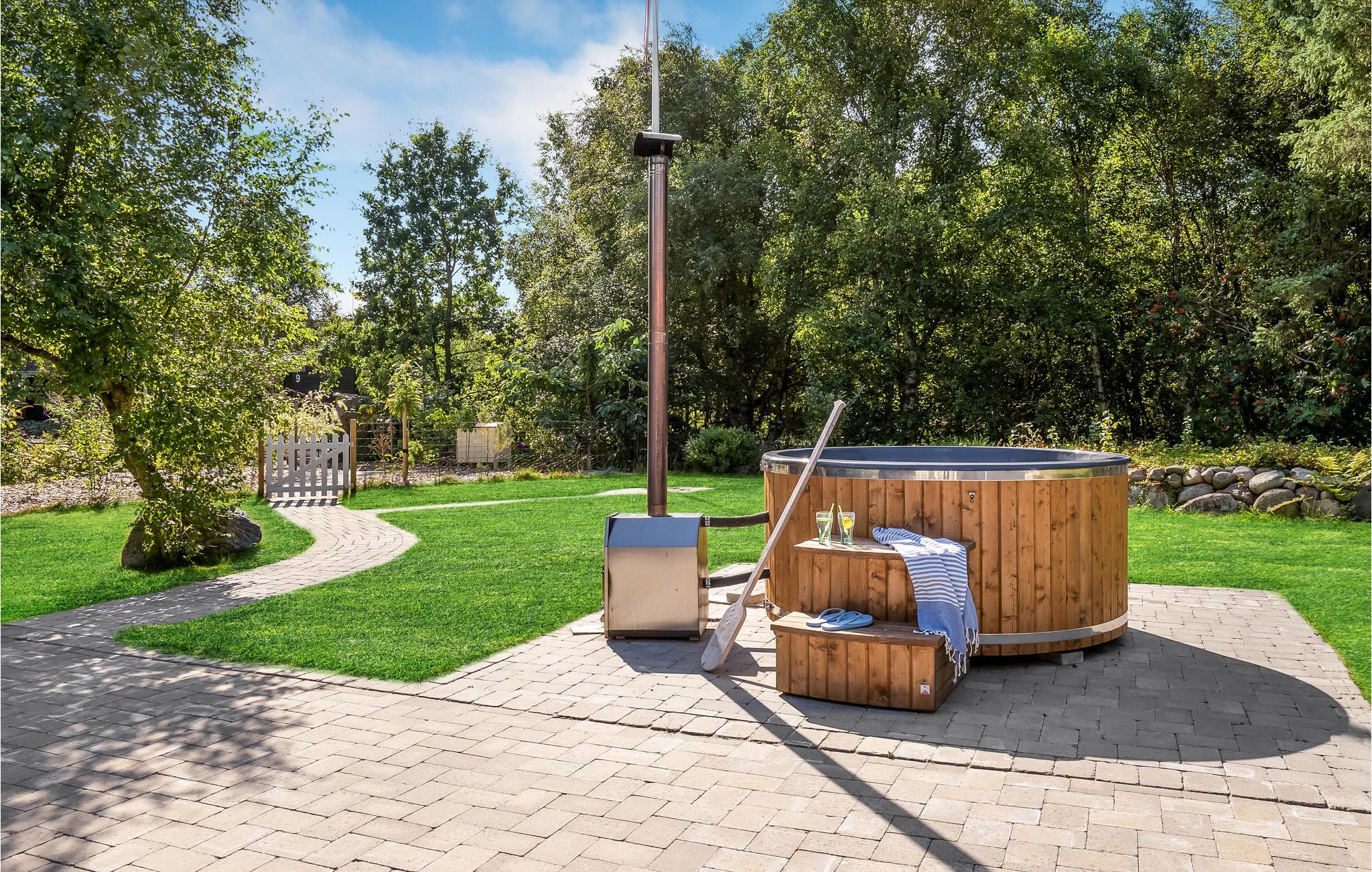 Et andet højdepunkt ved huset er udendørsområdet med et finsk vildmarksbad, hvor I kan slappe af efter en aktiv feriedag. Den åbne terrasse er ideel til at tilbringe de lange, milde danske sommeraftener udenfor. I har også mulighed for at tilbringe en hyggelig aften omkring bålpladsen.