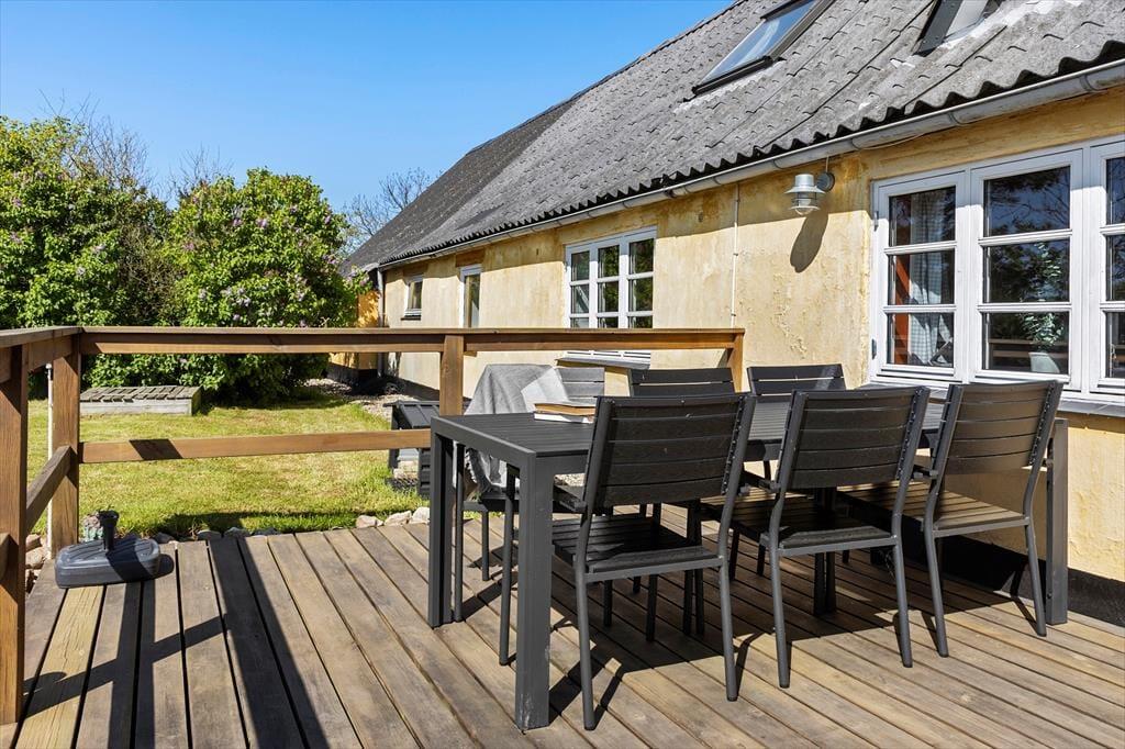 Syd for sommerhuset ligger en dejlig træterrasse, der er udstyret med grill og gode havemøbler. Trænger I til at komme helt ned i tempo, er det herligt at sidde her i landidyllen i høj sol og med fuglekvidder over markerne. Grunden måler 1500 m2, så der er masser af plads til at lege og spille bold på græsplænen, og der er fine parkeringsforhold på grus arealet. Huset råder ligeledes over en transportabel hundeindhegning på 50 m. x 1,12 m, som I er velkommen til at benytte.