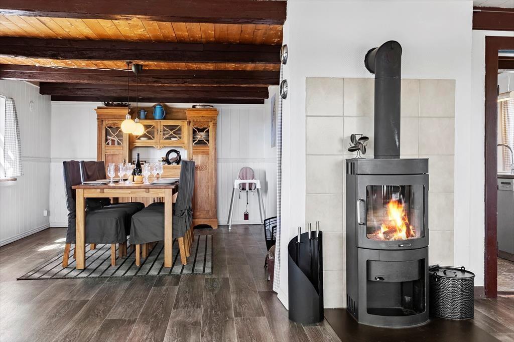 Ejendommen har ligget på Gundtoft Møllevej i mere end et århundrede, og i 2022 er det blevet renoveret, så det nu fungerer som en fin feriebolig for seks personer. I har god plads inden døre, for 118 m2 er fordelt på stueplan og førstesalen. To af husets tre soveværelser er placeret ovenpå, hvor I også finder en møblerbar repos – bemærk, at de to soveværelser ligger i forlængelse af hinanden. I stueplan ligger det tredje soveværelse og et rummeligt badeværelse med bruser, vaskemaskine og tørretumbler, og endelig er der opholdsafdelingen, hvor køkken og stue ligger i åben forbindelse. Er det køligt udenfor, kan I tænde op i brændeovnen og tage varmepumpen i brug, og trænger I til lidt underholdning, når I slapper af i sofaafdelingen, er der tv med tyske og engelske kanaler samt tilhørende Chromecast.