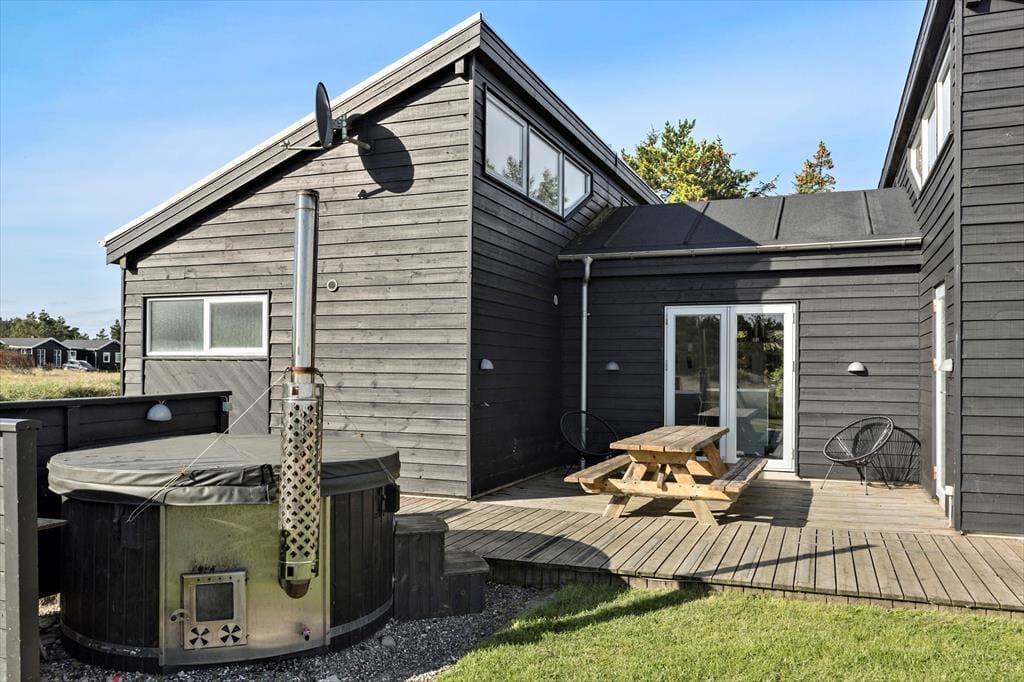 Udendørs åbner sig en fantastisk udsigt over landskabet, som kan nydes fra den store terrasse. Her finder du også et lækkert vildmarksbad, hvor du kan dyppe dig under åben himmel og opleve total afslapning med panoramaudsigten som baggrund. Om dagen kan du nyde solen og de rolige omgivelser, mens aftenerne kan bruges til hyggelige grillaftener i selskab med dem, du holder af. Huset er perfekt placeret til at få det bedste ud af naturen både inde og ude – og de rolige omgivelser sikrer, at du kan nyde dit ophold i fred og ro.