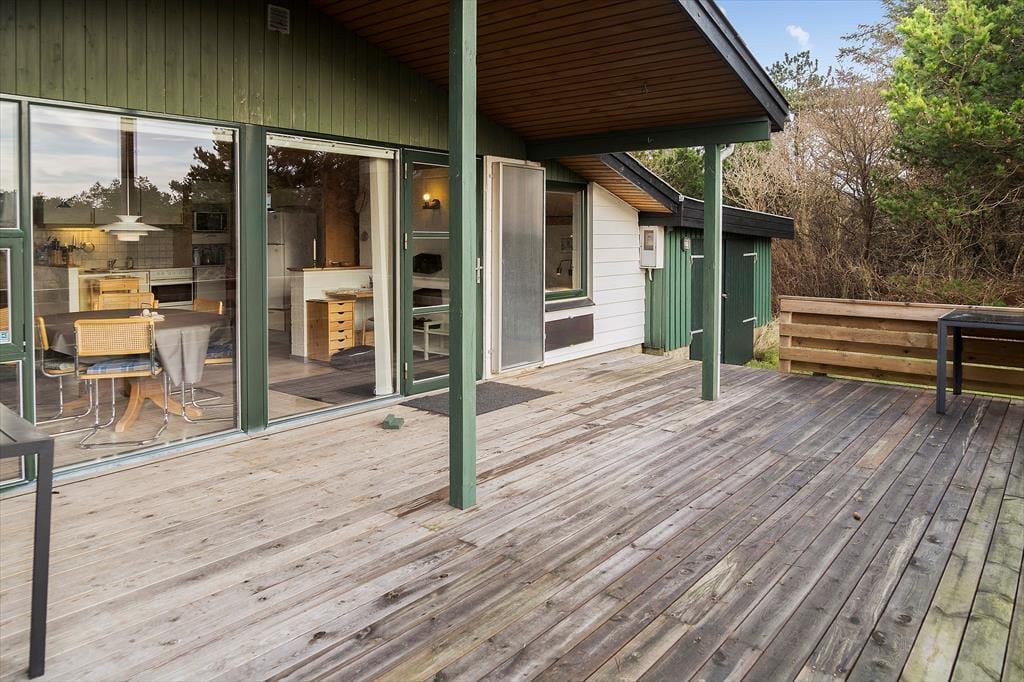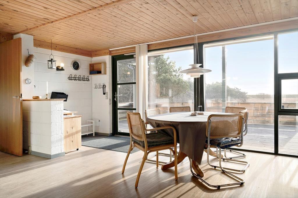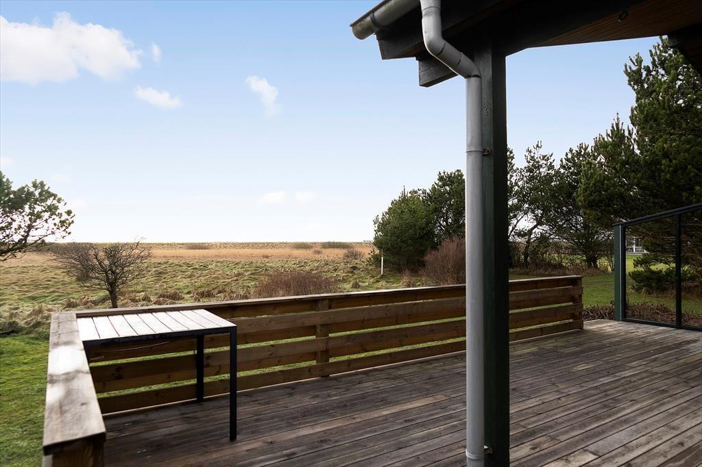 Terrassen og haven giver sommerhusets udendørsområde et ekstra løft. Her kan du sidde i solen, høre fuglene synge og mærke den friske brise fra fjorden. Haven er indbydende med plads til leg og afslapning, mens du nyder den smukke udsigt over vandet. Når aftenen falder på, kan du tænde op i brændeovnen og mærke den varme stemning brede sig, eller du kan samle familien til et måltid under åben himmel på terrassen. Om sommeren byder området på lange lyse aftener, hvor du kan lade tankerne flyde frit med udsigt til Limfjorden og dens skiftende farver.