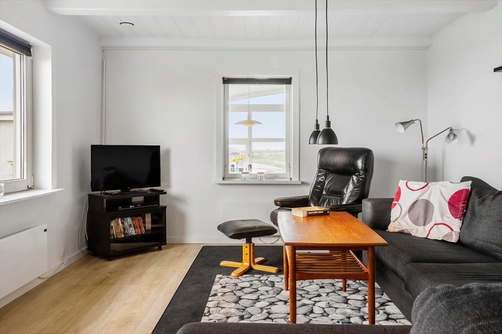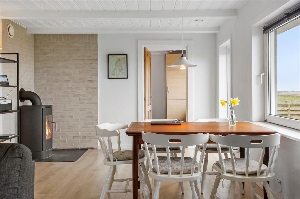 Når I træder indenfor i dette moderne sommerhus, mødes I af en lys og indbydende atmosfære. Husets stilfulde indretning skaber en varm og behagelig stemning, og de store vinduer giver masser af naturligt lys og udsigt til de smukke omgivelser. Fra udestuen kan man beundre kæmpe flokke af ænder, gæs og svaner – og måske være heldig at spotte traner, skestork, isfugl og havørn. I stuen er der plads til at samles foran brændeovnen, som er perfekt til de kølige aftener. Her kan I slappe af med et godt spil, en bog eller bare nyde varmen fra flammerne. Huset har et aktivitetsrum med både bordtennis, bordfodbold og dart, så der er masser af muligheder for at få tiden til at flyve, mens I hygger jer sammen. Med plads til 8 voksne og 2 husdyr er der rigeligt med plads til både store og små grupper.