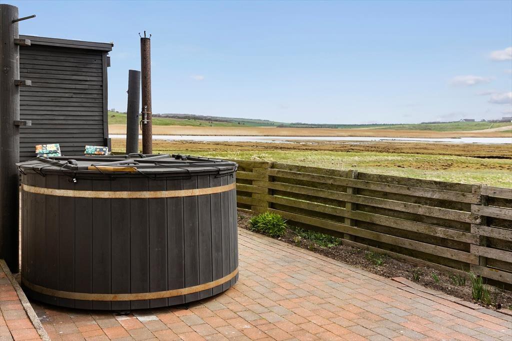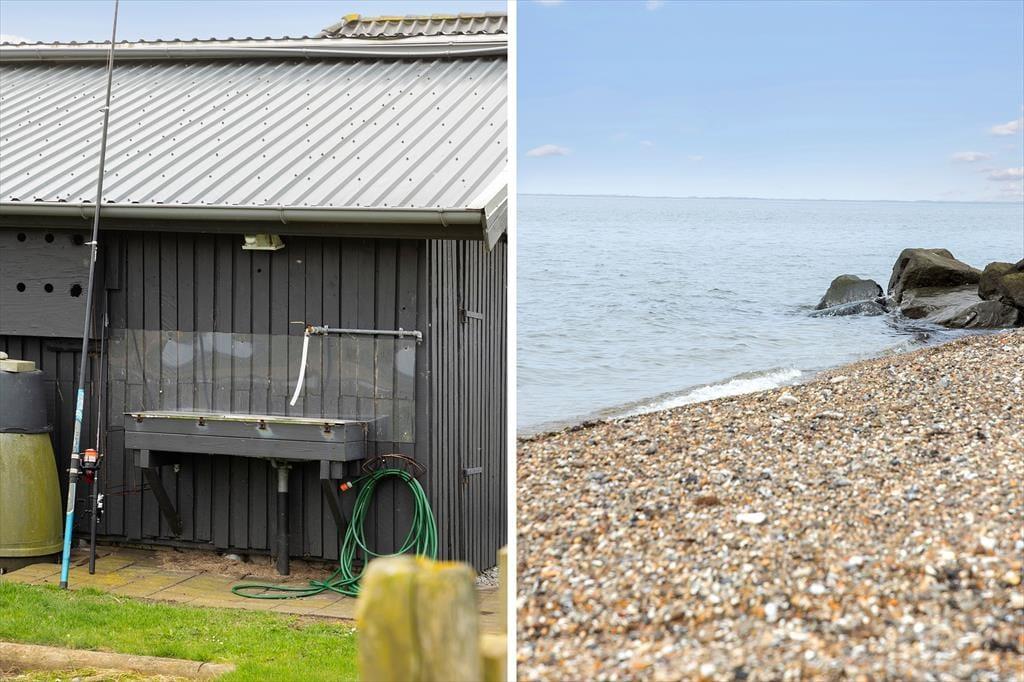 Når vejret tillader det, er terrassen og den store grund et fantastisk sted at tilbringe tid sammen. På terrassen finder I et vildmarksbad, hvor I kan slappe af og nyde udsigten over den nærliggende natur. Det er også den perfekte plads til at grille, spise ude eller bare nyde solen. Fra sommerhuset er der kun få skridt til stranden, så I kan nemt tage en dukkert eller samle flotte sten og muslinger. Grunden er stor og rummelig, og her er der mulighed for at spille spil eller bare slappe af i den private have. Med gode faciliteter til at rense fisken, hvis I er heldige at få noget på krogen, er dette stedet, hvor både afslapning og aktivitet går hånd i hånd.