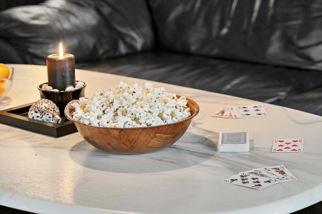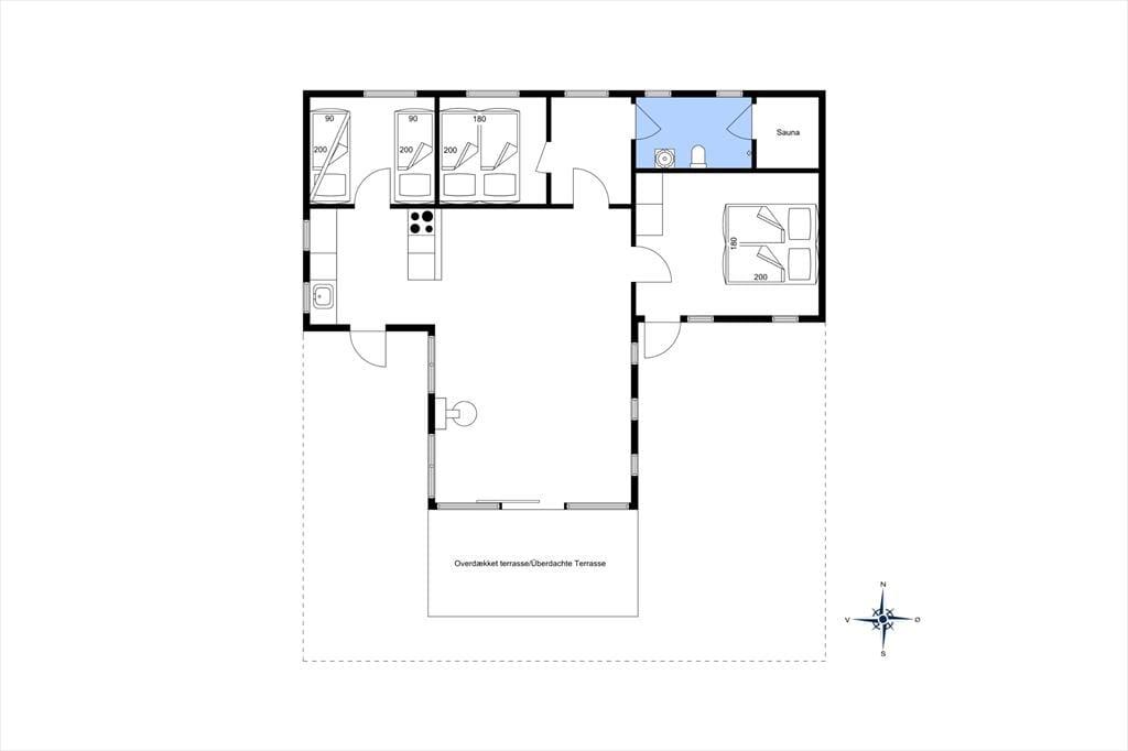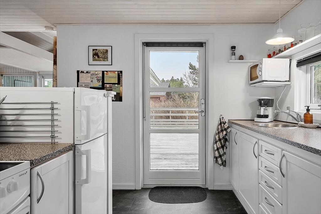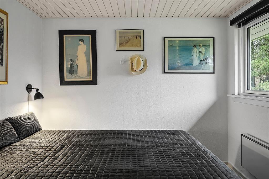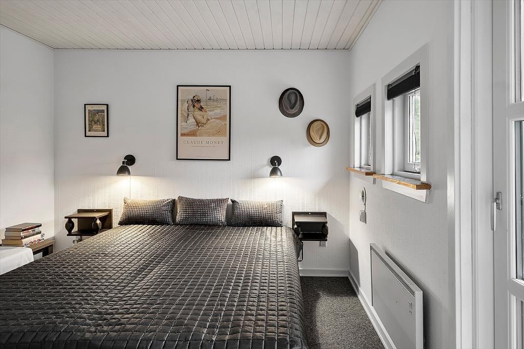 Indenfor mødes du af en lys og indbydende indretning, hvor hyggen straks mærkes. Sommerhuset er indrettet med fokus på afslapning og samvær, og de lyse farvetoner understøtter den rolige feriestemning. I opholdsrummet kan du samle familien til lange aftener med spil og snak, mens brændeovnen knitrer i baggrunden og spreder varme på køligere dage. Det er let at forestille sig en stille morgen med kaffe i hånden, mens dagslyset strømmer ind gennem vinduerne, eller en rolig aften, hvor flammernes skær skaber en helt særlig stemning. Indretningen gør det nemt for både voksne og børn at finde sig til rette, og der er tænkt på, at alle kan være sammen – men også trække sig tilbage, når der er brug for ro.