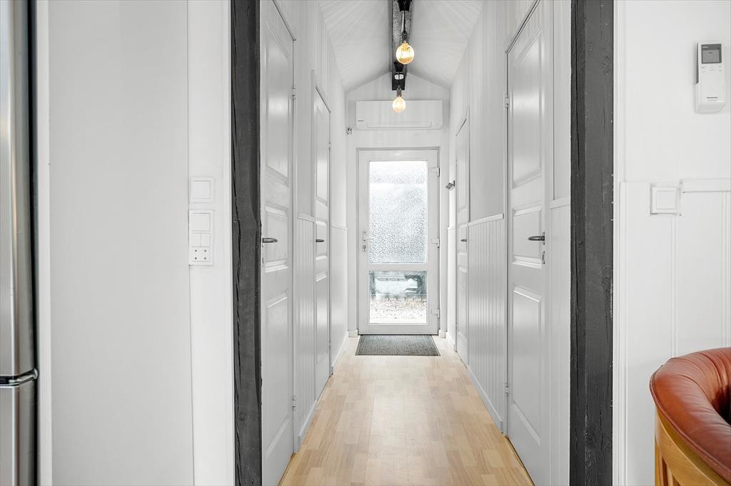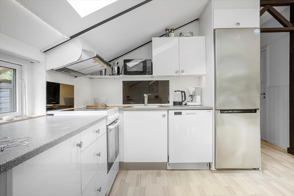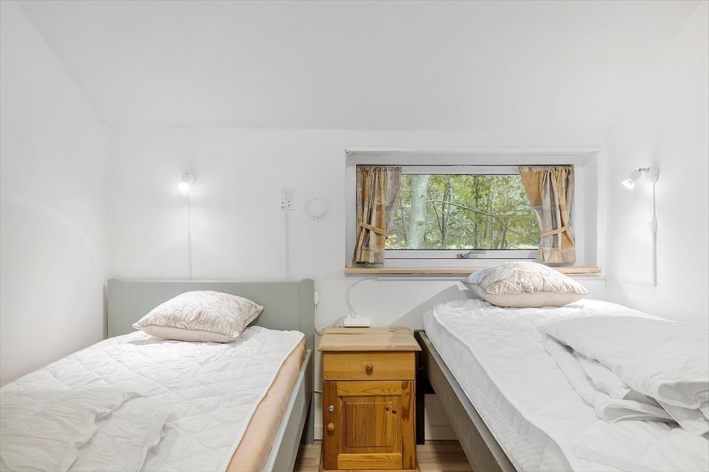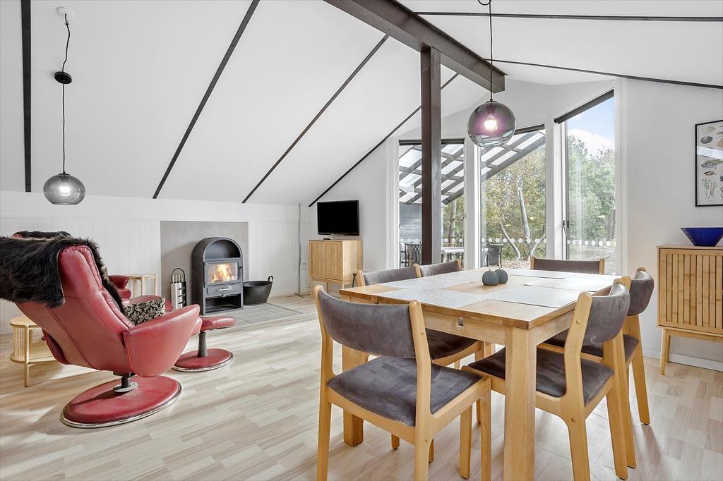De lyse farvetoner, det nøje udvalgte møblement og det hvidmalede loft, der går helt til kip: Alt det og meget mere er med til at skabe en rar og indbydende atmosfære inden døre. Stue og køkken ligger samlet, og her står en brændeovn perfekt placeret nær sofaafdelingen, mens det store gavlvinduer lader dig kigge lige ud på den grønne naturgrund, når du slapper af. Badeværelset er med bruseniche, og på de tre soveværelser er der gode sengepladser til seks personer. En hund er for øvrigt også velkommen i huset, hvis din firbenede ven trænger til en ferie i naturskønne omgivelser.