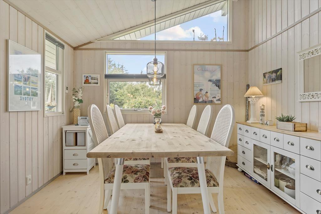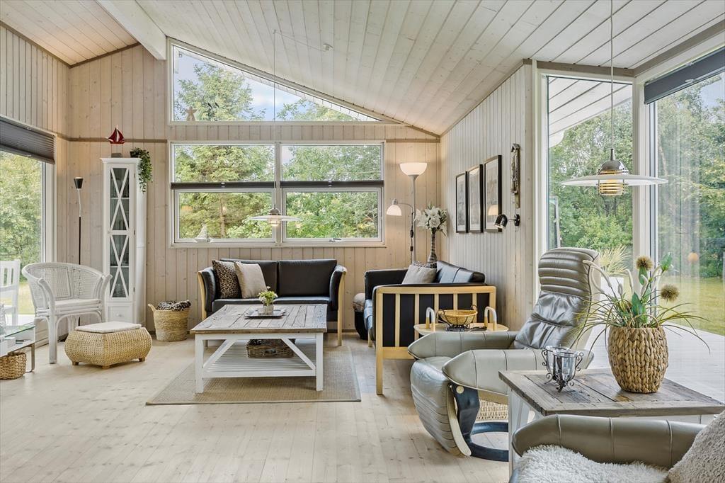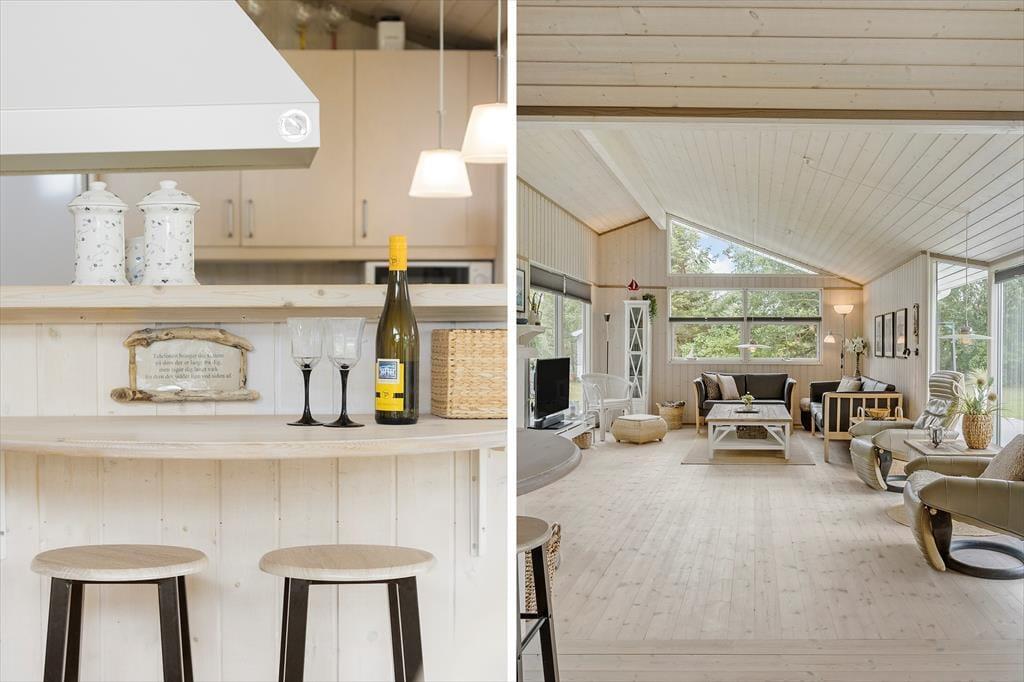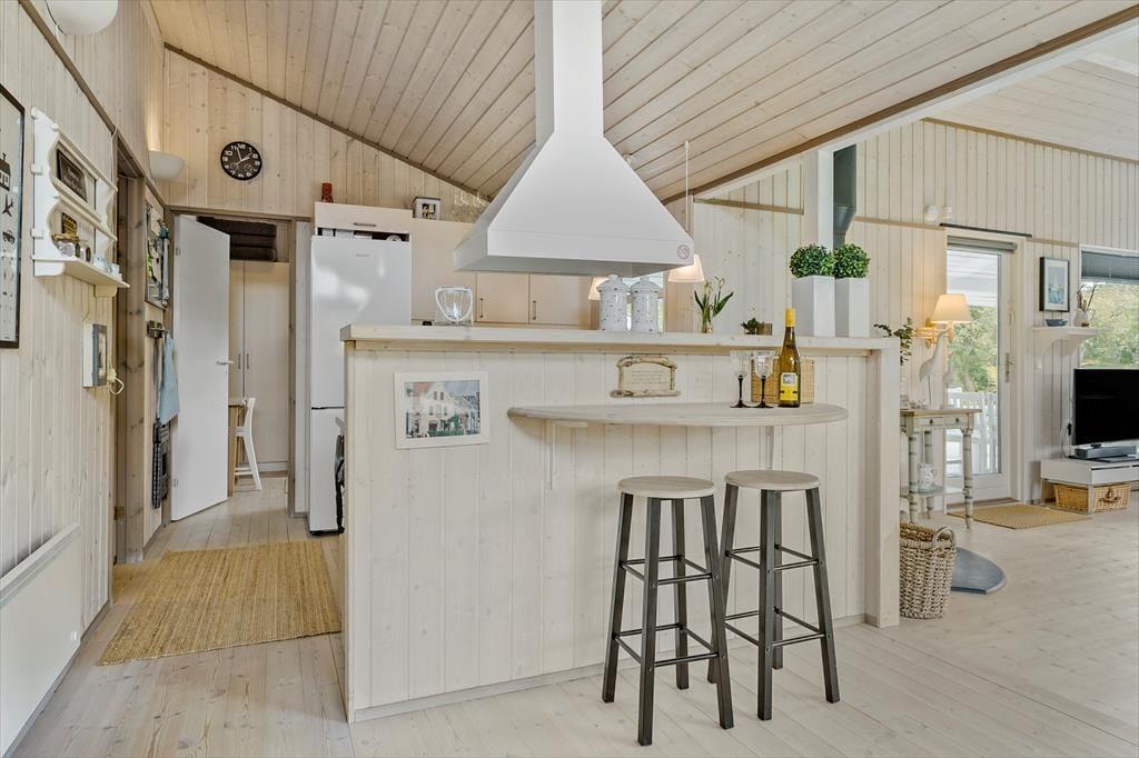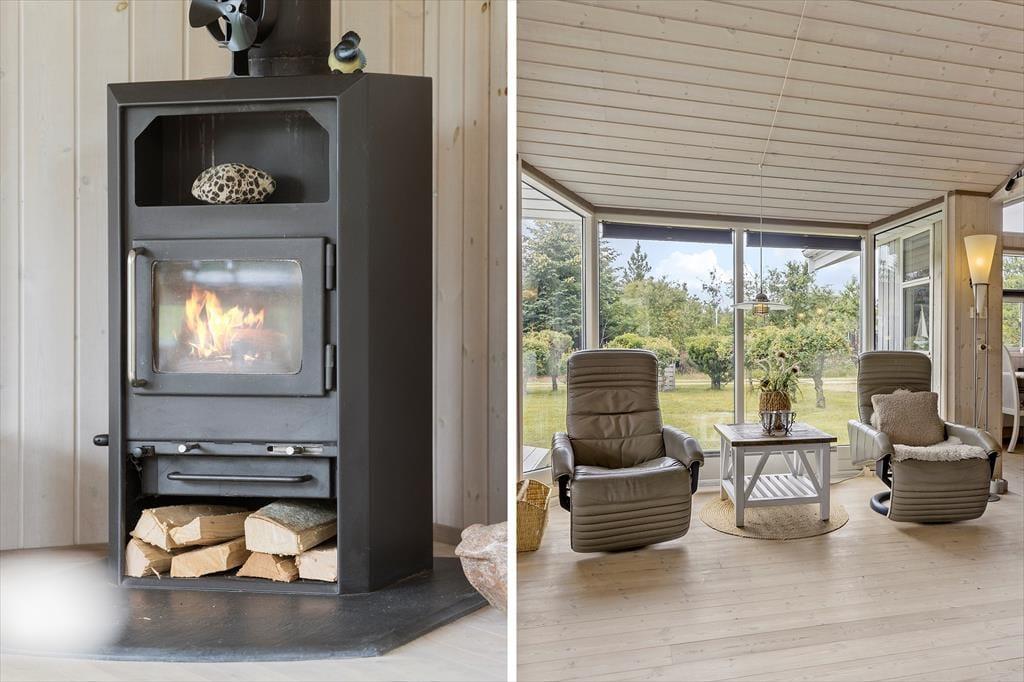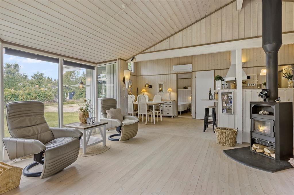 De fredelige og naturskønne omgivelser er nu bestemt ikke det eneste argument for at holde ferie her, for selve sommerhuset er et velholdt eksemplar med en særdeles indbydende atmosfære. Inden døre kan I brede jer på 87 m², som er fordelt på tre gode soveværelser, et pænt badeværelse og et stort opholdsrum med integreret køkken og stue. Indretningen er lys og lækker, og der er komfortable kvalitetsmøbler overalt – blandt andet elevationssenge på to af soveværelserne. Stuen er udstyret med både brændeovn og varmepumpe, og de store vinduespartier sørger for et godt lysindfald og en fin udsigt til haven.