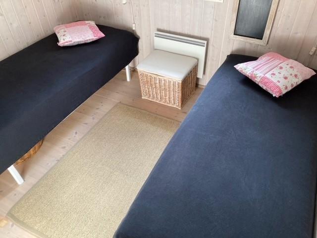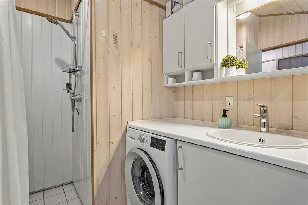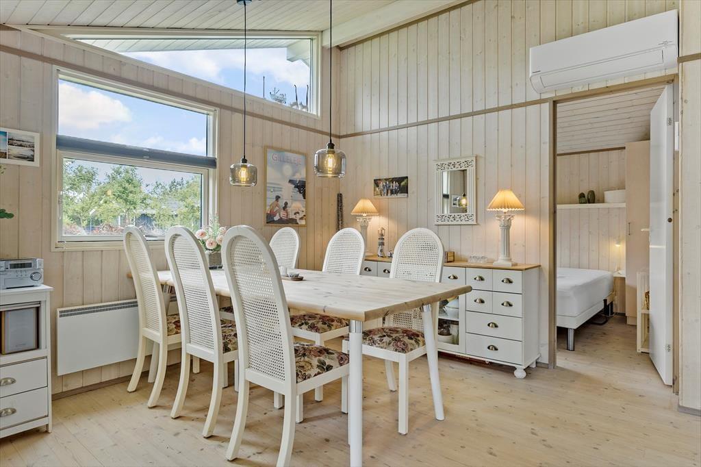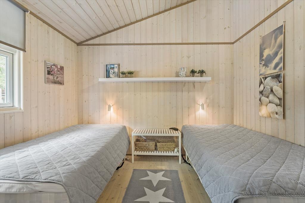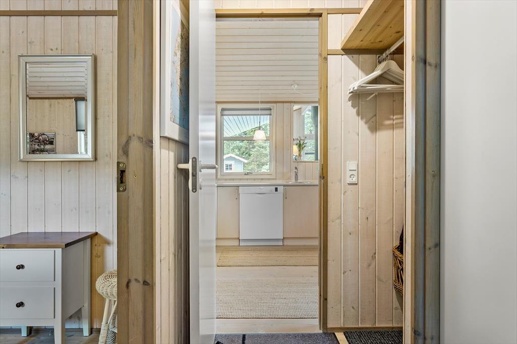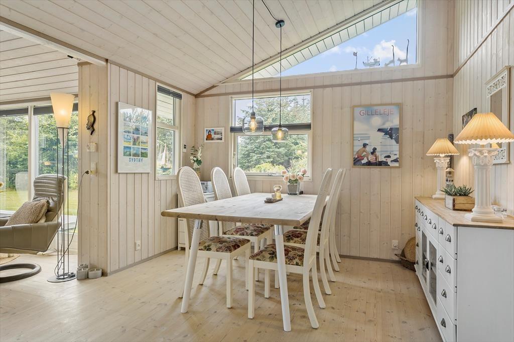 De fredelige og naturskønne omgivelser er nu bestemt ikke det eneste argument for at holde ferie her, for selve sommerhuset er et velholdt eksemplar med en særdeles indbydende atmosfære. Inden døre kan I brede jer på 87 m², som er fordelt på tre gode soveværelser, et pænt badeværelse og et stort opholdsrum med integreret køkken og stue. Indretningen er lys og lækker, og der er komfortable kvalitetsmøbler overalt – blandt andet elevationssenge på to af soveværelserne. Stuen er udstyret med både brændeovn og varmepumpe, og de store vinduespartier sørger for et godt lysindfald og en fin udsigt til haven.
